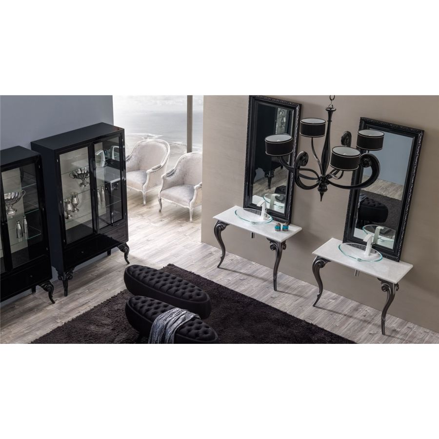 A classic mirror with a refined solid wood frame, and entwined details, available in a wide range of hand-made decorations and carved details to be realized in different colour. Greta is matching perfectly with the wardrobe and bookcases of same collection for special ensambles, but it is also perfect by itself.