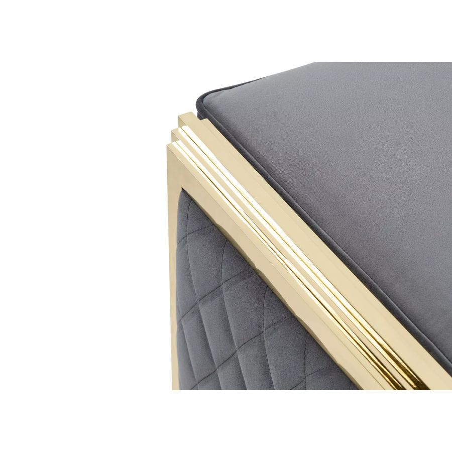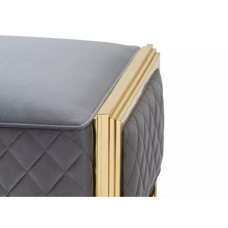 With a smooth and beautiful shape, the Tenor Bench has a highly stylish design. This upholstered beauty, made with grey velvet and polished brass legs, will add an appealing presence to any room, hotel suite, or master bedroom.