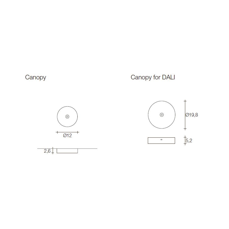Väggdosans storlek: Ø 12 x H 2,6 cm (Ø 19,8 x H 5,2 cm för dali) / inch.: Ø 4.7" x 1"