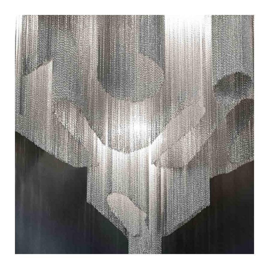 En fantastisk design av Christian Lava, Stream är en imponerande närvaro i varje rum. Streams design utnyttjar de fysiska egenskaperna hos de använda materialen för att svepa ett rum i ett unikt, uppslukande ljus. Här verkar över 7 kilometer metallkedja flyta ner från den vågformade, nickelpläterade ramen. Dessa kaskadliknande nivåer kastar ett strimmigt, men ändå lugnt, skuggspel genom hela rummet.