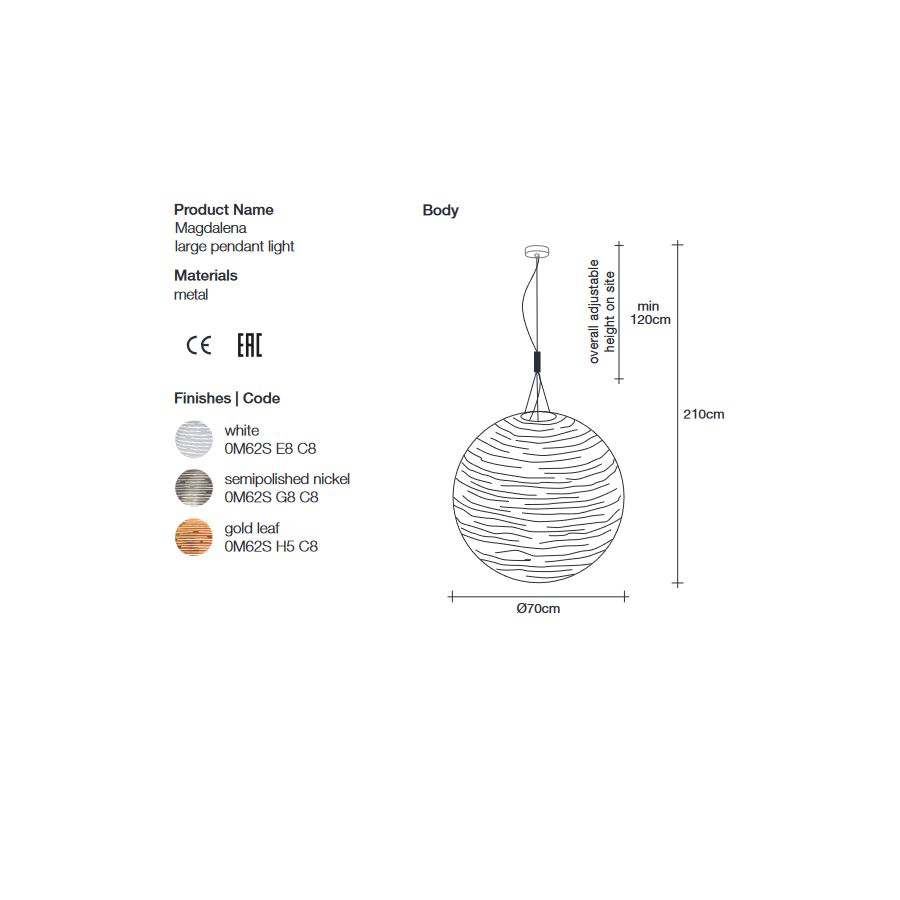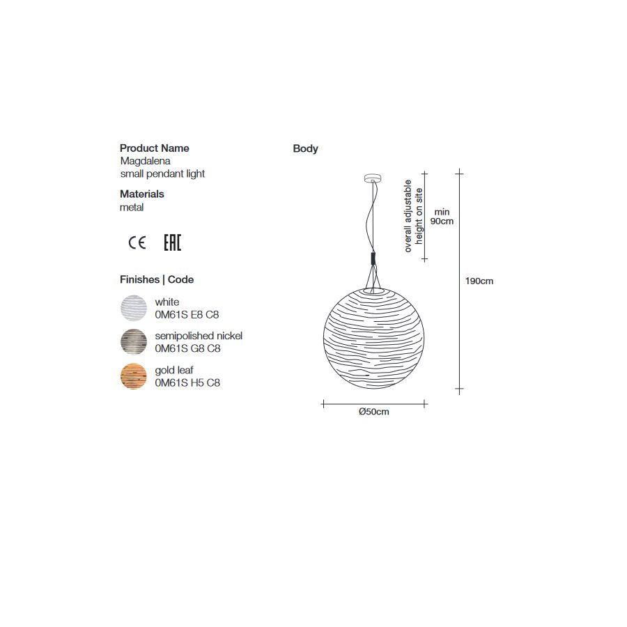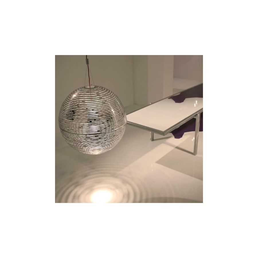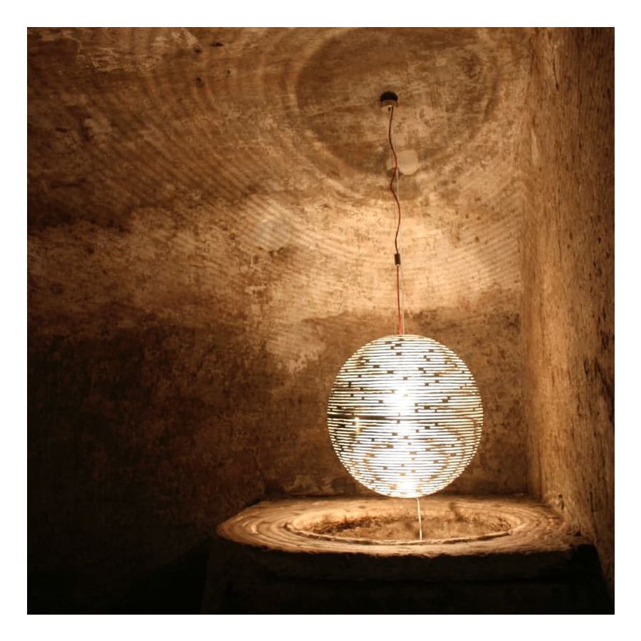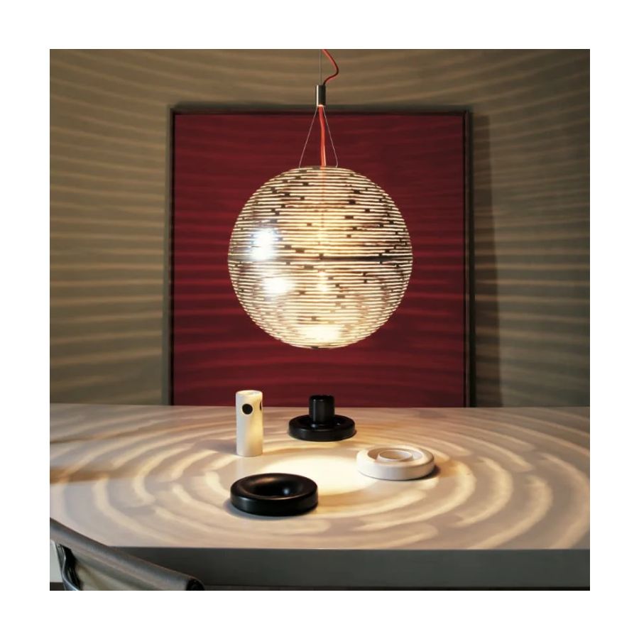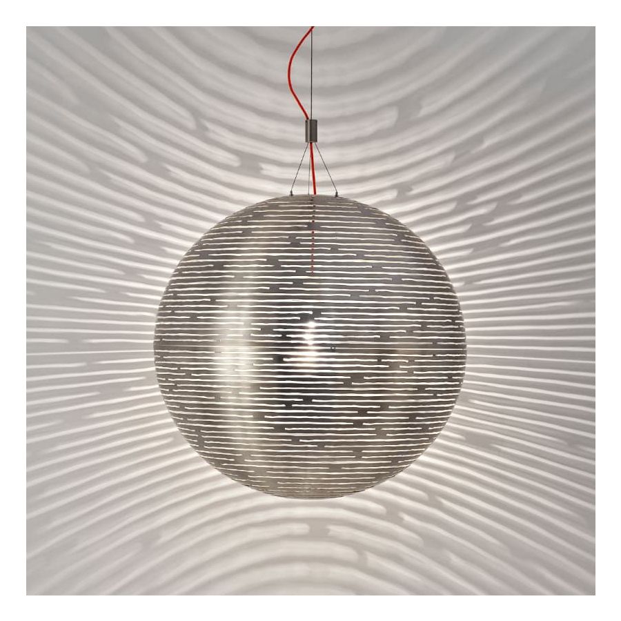 Genom att nå in i traditionella former tillåter Magdalenas laserskurna, horisontella öppningar dess ljus att utvidga sitt omfång till hela rummet. Genom att skapa ett förföriskt mönster av ljus och skugga framhäver Magdalena rummets egen form. Detta unika utbyte skapar en pendel som påverkar varje utrymme, oavsett storlek. Design Bruno Rainaldi.