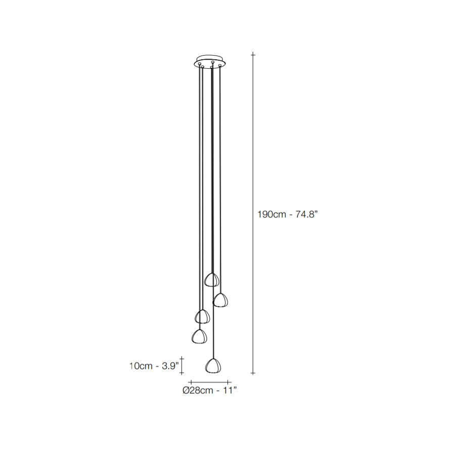 5 lampor (cm.: 190 x 28 x 28 / inch.: 74.8" x 11" x 11")