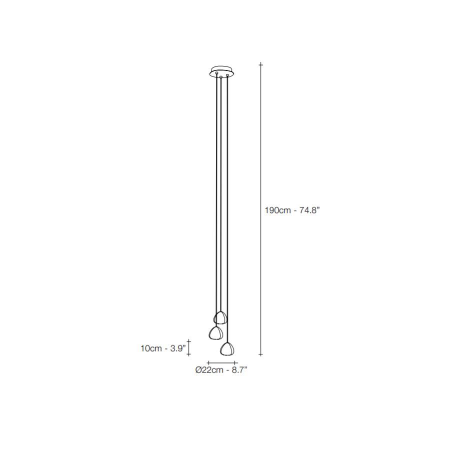 3 lampor (cm.: 190 x 22 x 22 / inch.: 74.8" x 8.7" x 8.7")