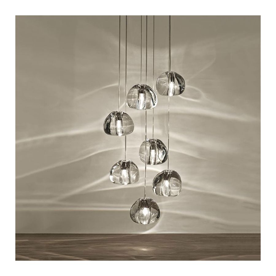 Inspirerad av de lugna och fängslande ljusbrytningar som skapas av vatten, är Mizu en anpassningsbar pendellampa från Terzani. Likt vattendroppar är inga två Mizu likadana, varje kristallform är unik och tillverkas noggrant för hand. Genom att använda endast den klaraste kristallen efterliknar Mizu perfekt vattnets ljusbrytning och kastar fantastiska mönster runt rummet, som påminner om rinnande vatten. Finns i klar, silverdamm, guld, cognac och champagnefinish.