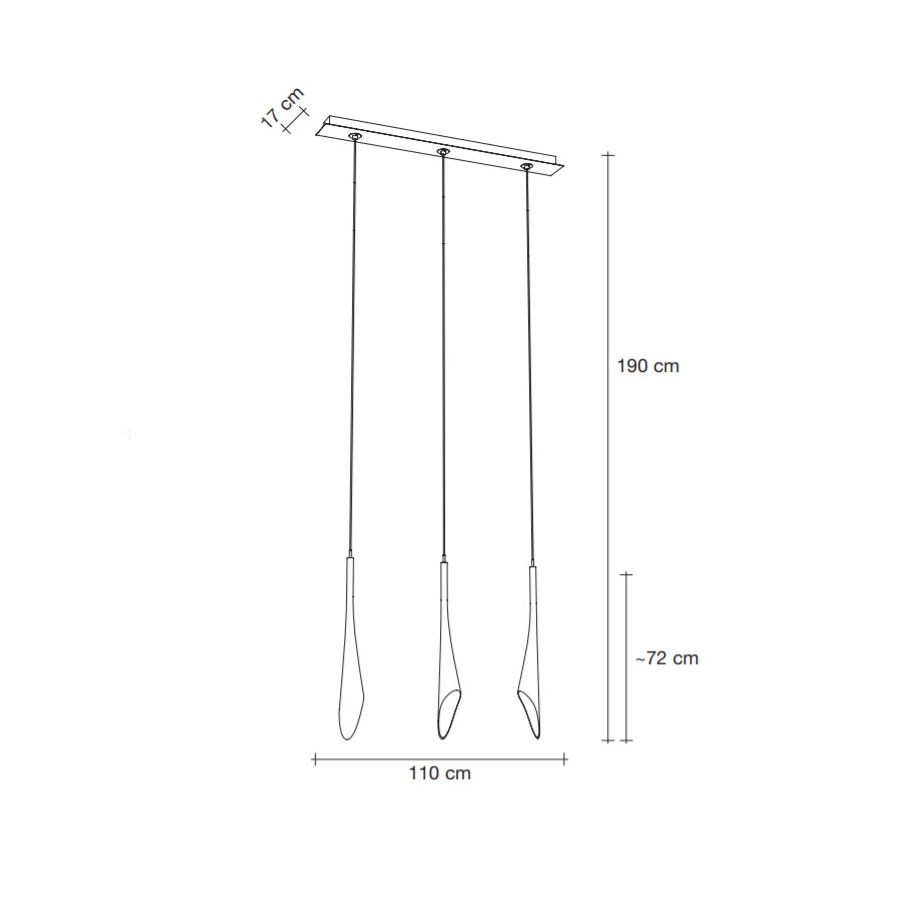 3 lampor (cm.: 190 (H1/72+H2/118) x 110 x 17 / inch.: 74.80" (H1/28.35"+H2/46.46") x 43.31" x 6.69")
