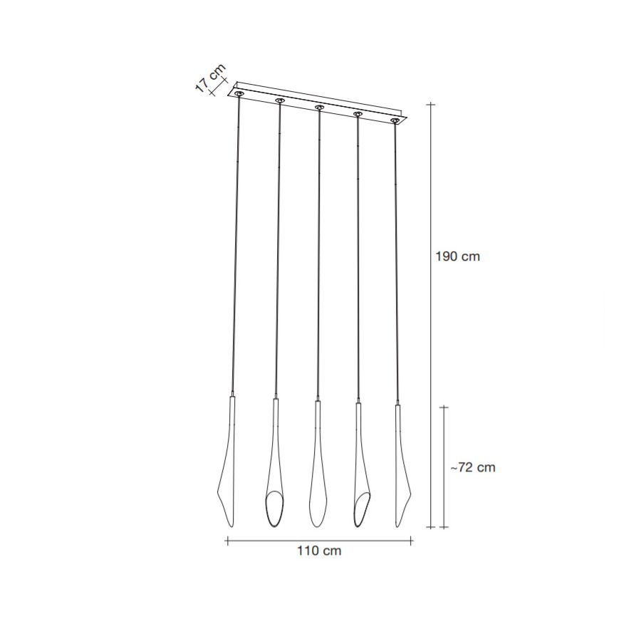 5 lampor (cm.: 190 (H1/72+H2/118) x 110 x 17 / inch.: 74.80" (H1/28.35"+H2/46.46") x 43.31" x 6.69")