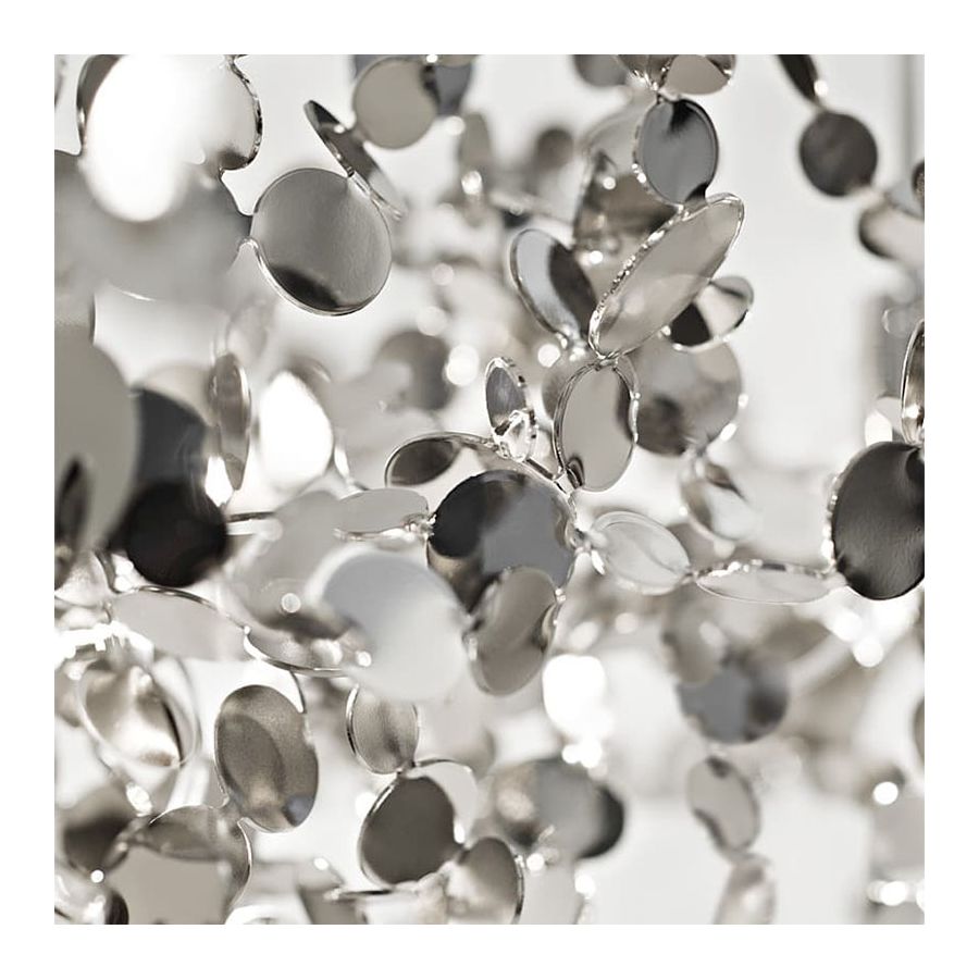 Med denna nya upphängningslampa skapar formgivaren Dodo Arslan ett skimrande, silverfärgat moln. Argent består av metallskivor som noggrant har fogats ihop för hand av Terzanis hantverkare till kluster. När den tänds avger de många, vinklade ytorna på skivorna ett mjukt, skimrande, vitt sken.