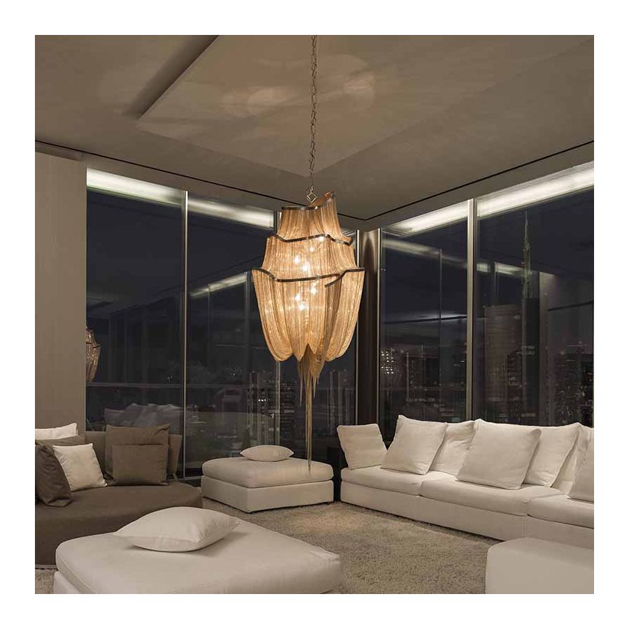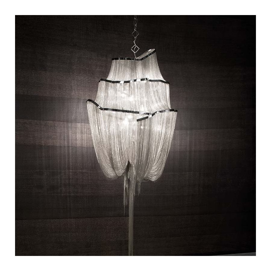 Som till synes levande skapar atlantis’ skimrande ljus en livfull energikälla. Dess hypnotiserande, organiska effekt skapas av hundratals upplysta längder av draperad, nickelkedja. Likt vatten i havet framstår atlantis’ kedjor som flytande, kaskaderande över dess blanka nickelband och faller ner mot avgrunden innan de vänder tillbaka in i sig själva. Atlantis består av nästan tre miles kedja, noggrant handgjord av mästerliga italienska hantverkare.
