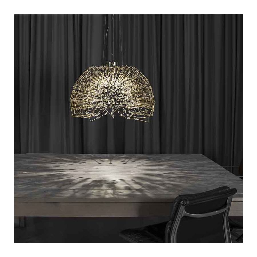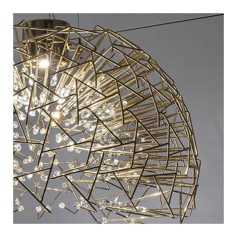 Core erinrar om den naturliga energin i hjärtat av vår värld. Likt lysande lava som sipprar genom jordskorpan bryter vibranta sfärer av fasetterat kristall fram genom denna pendels järnyta. Att tvinga ljuset att passera genom denna metallstruktur resulterar i ett kraftfullt, vibrerande utbyte av krafter; ljus och skugga bryter ut över rummet när LED-ljuset strömmar igenom, samtidigt som ljuset självt avger en organisk lyster.