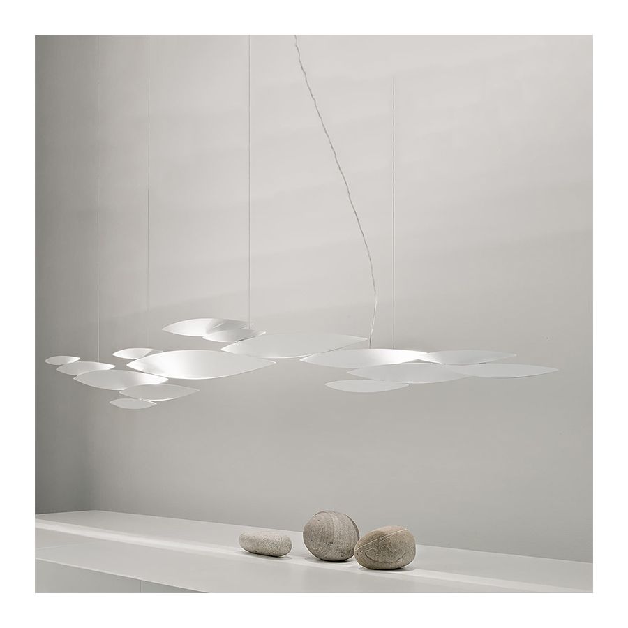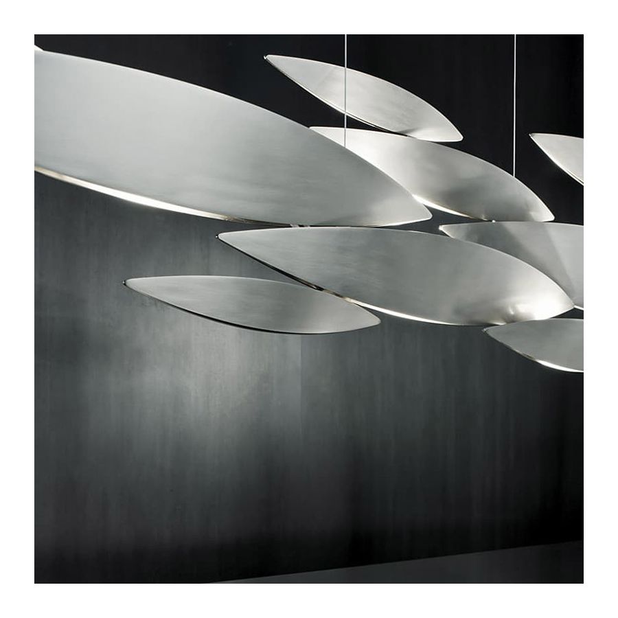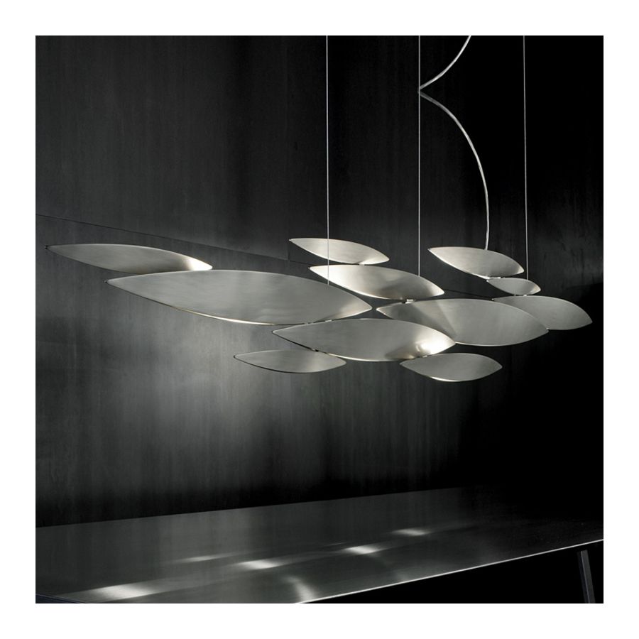 I Lucci Argentati hämtar inspiration från naturen för att skapa en lekfull, men ändå modern belysning. Påminnande om ett stim fisk som rusar genom sötvatten skapar den ett förtrollande sken. Set om 22 slanka lampor kombineras för att bilda en imponerande pendel med tunna snitt längs undersidan som skapar en dämpad, lugn skönhet. Tack vare sitt modulära system är I Lucci Argentati anpassningsbar och kan kombineras i många olika konfigurationer: från liten till extra stor; som pendel eller väggarmatur; och med ytbehandling antingen i borstad nickel, vit eller borstat guld.