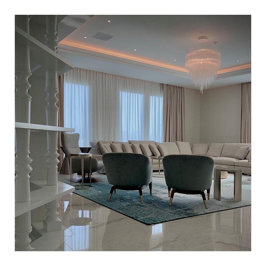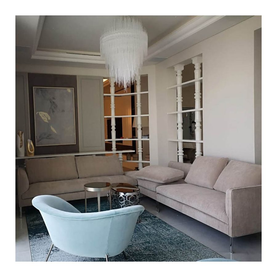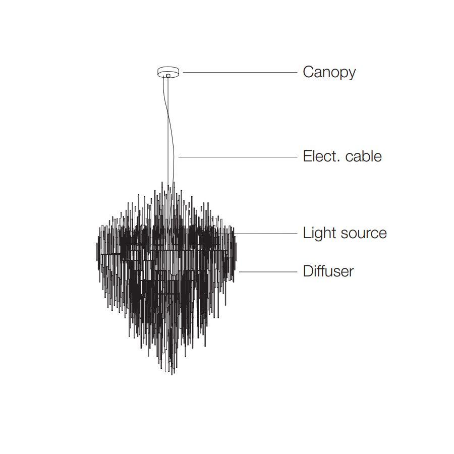 Terzani designteam kan arbeta med dig för att utveckla en skräddarsydd Iceberg-design som passar ditt projekt inklusive dessa alternativ: wirelängd, takrosettens ytbehandling, storlek och form.