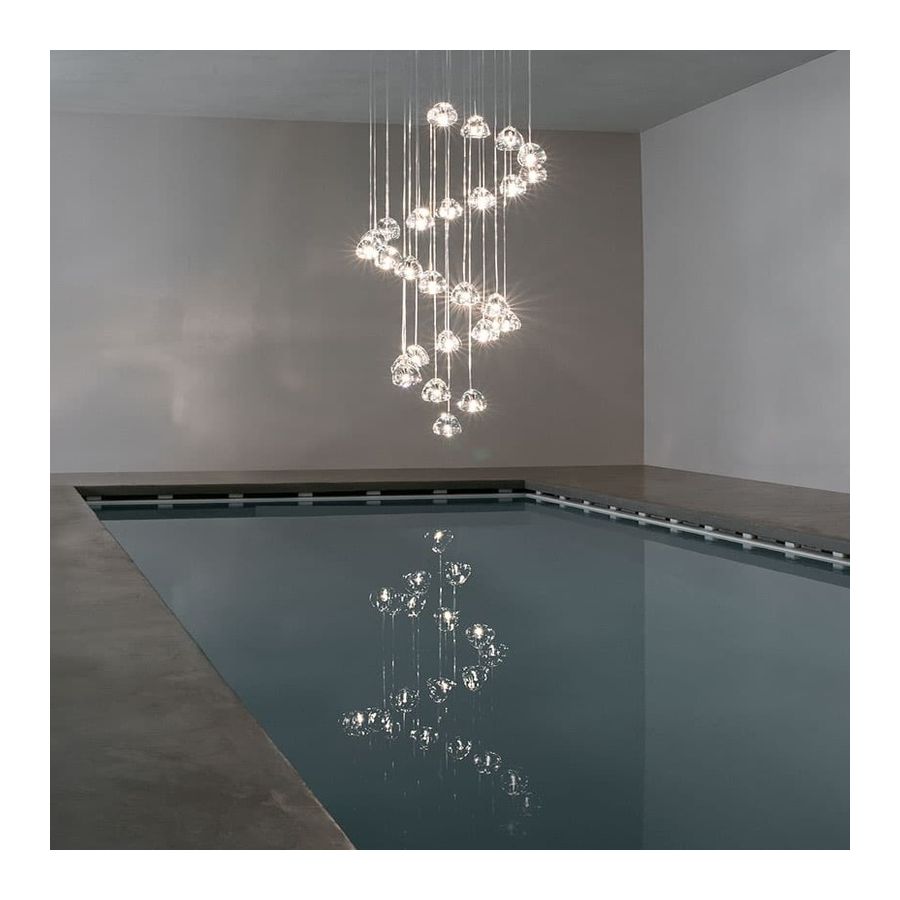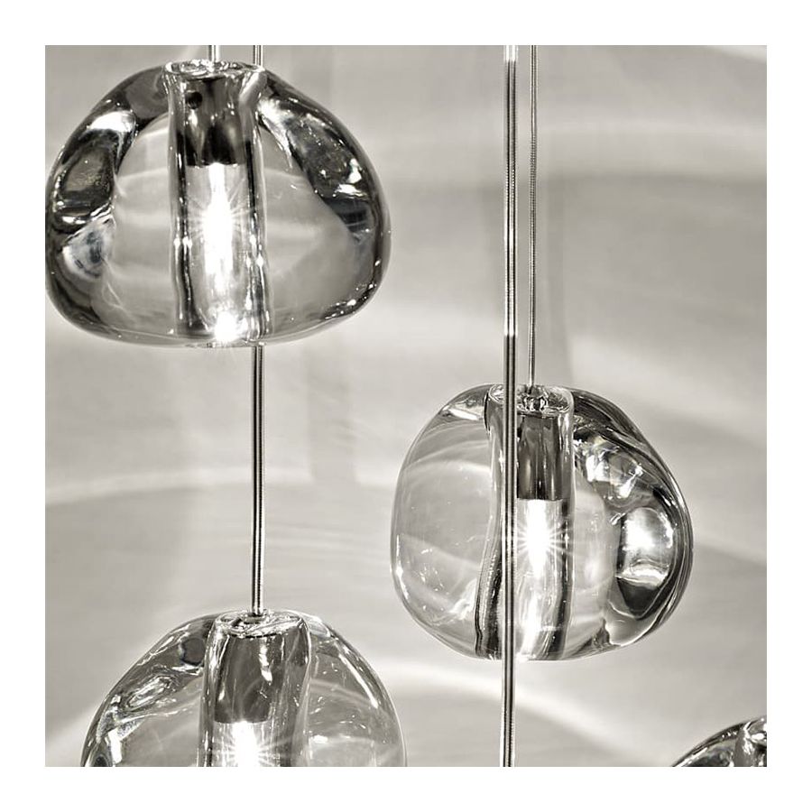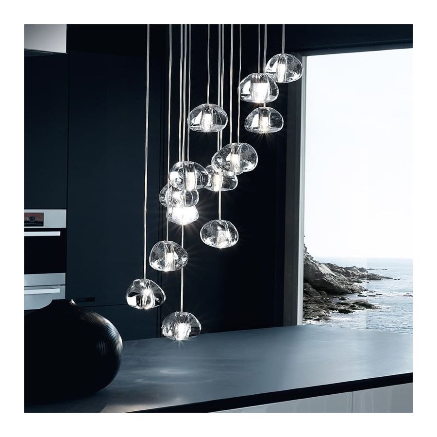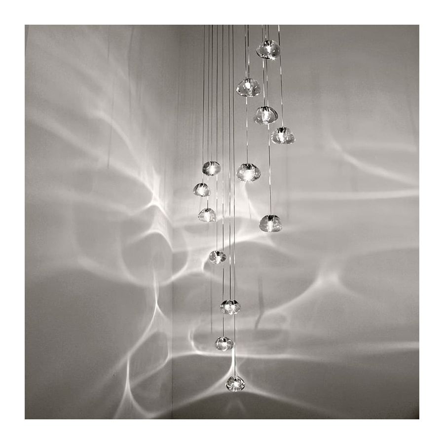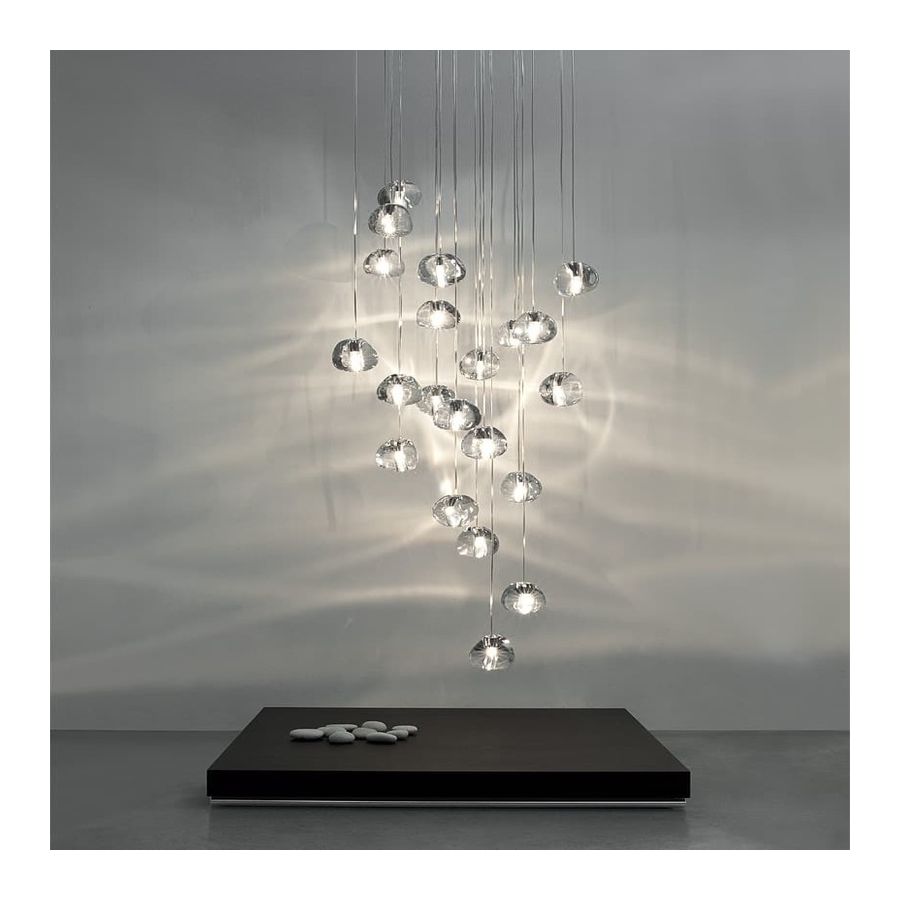 Inspirerad av de lugnande och förtrollande ljusbrytningar som skapas av vatten, är Mizu en anpassningsbar takpendel från Terzani. Likt vattendroppar är inga två Mizu likadana, varje kristallform är unik och tillverkad omsorgsfullt för hand. Genom att endast använda den klaraste kristallen efterliknar Mizu perfekt vattnets ljusbrytning och kastar fantastiska mönster runt rummet, som påminner om rinnande vatten. Finns i klar, silverdamm, guld, cognac och champagnefinish.