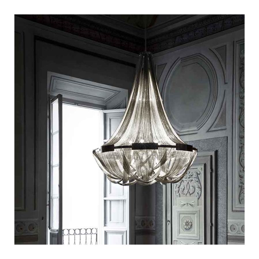 Återuppfinnar klassikerna. Med Soscik kombinerar Terzani traditionella, hantverksmässiga tekniker med spetsteknologi för att ge den traditionella ljuskronan en modern uppdatering. Genom att fläta metallkedja över en nickelpläterad stomme skapar Soscik en dramatisk och romantisk effekt, samtidigt som den kan komplettera dagens moderna lyx. Finns som ljuskrona eller taklampa, Soscik visar att modern design inte behöver offra lyx.