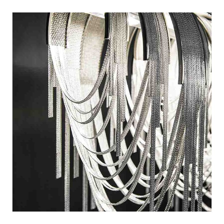 Designern Diego Bassetti och arkitekten Andrea Panzieri från Studio 14, protegéer till Bruno Rainaldi, tillämpade sin multidisciplinära ansats för att skapa Terzanis första LED-upphängningslampa. Denna geometriska design kombinerar tunna nickelkedjor med den senaste LED-teknologin för att skapa ett ljus som är både elegant och modernt. Ett andetag av nytt ljus, Volver förenar teknologi och konst för att uppnå en ny nivå av lyx.