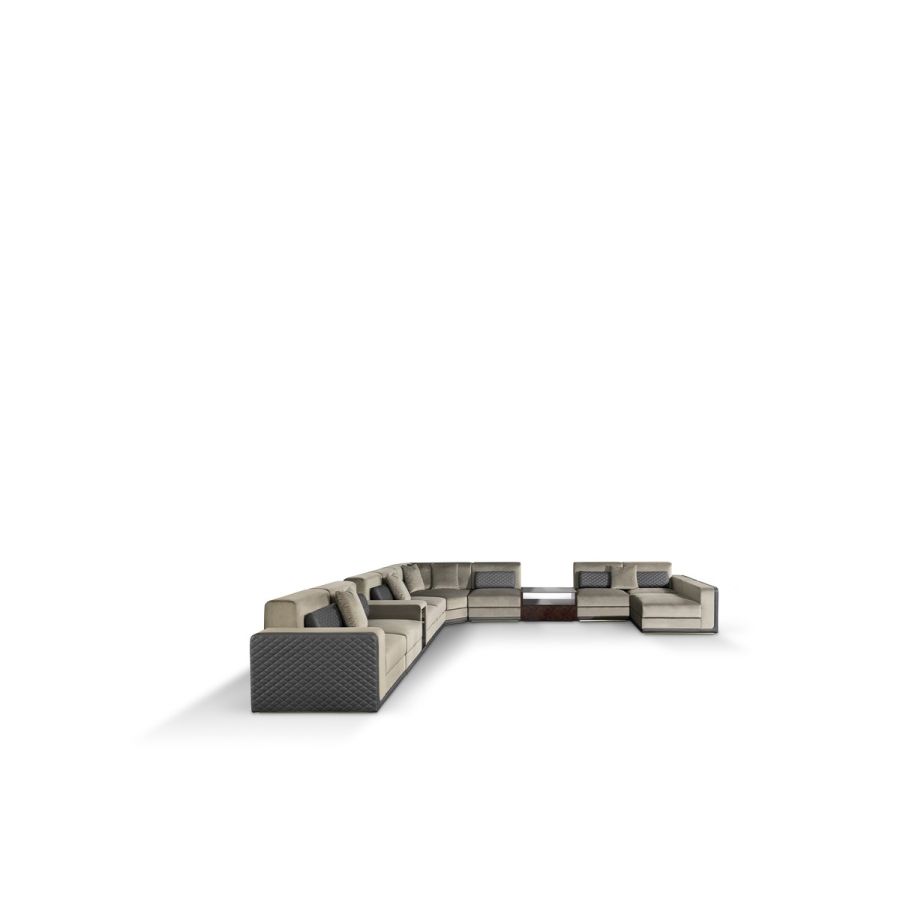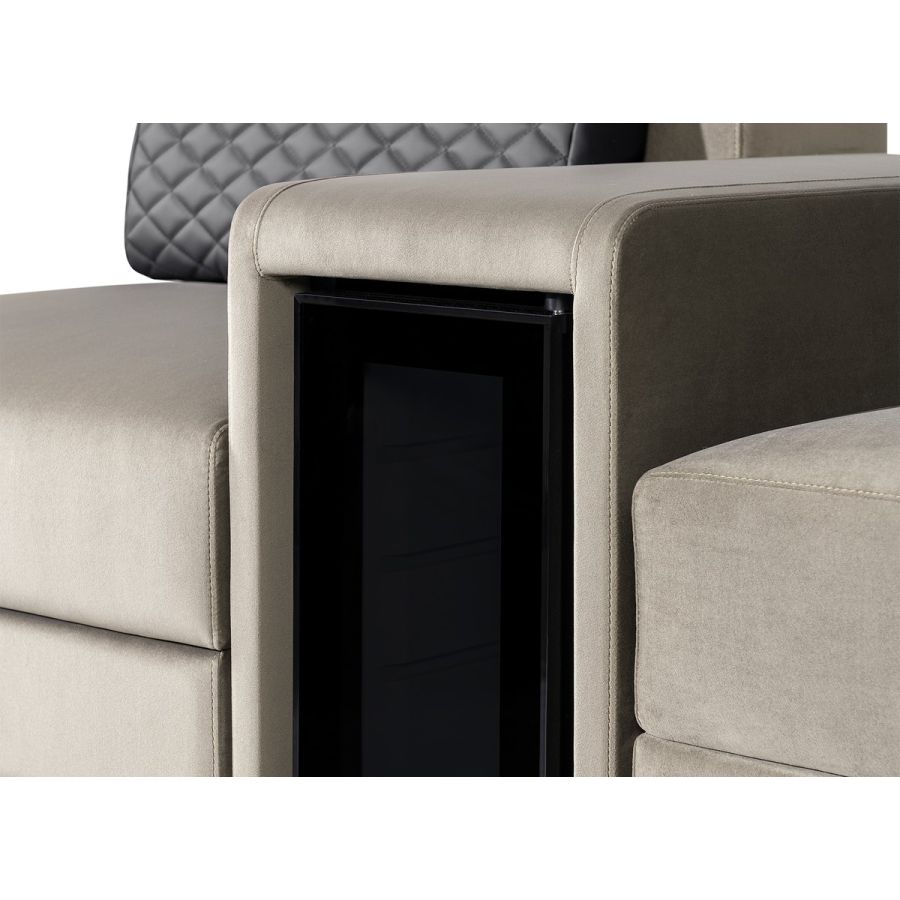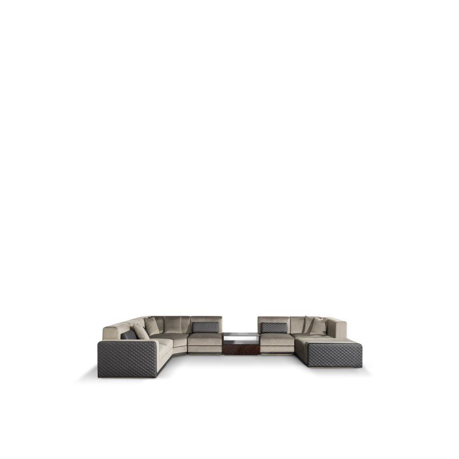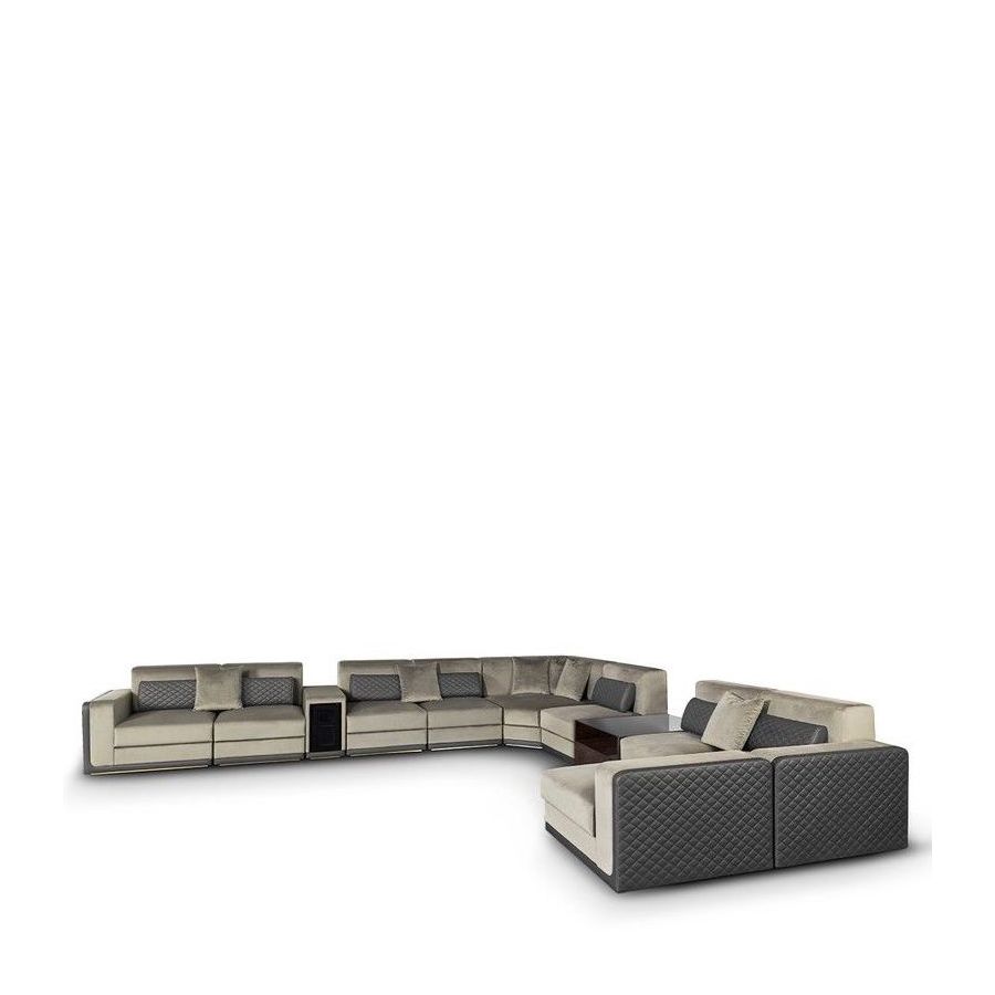 The Thomson Sofa is a modular upholstery solution that brings a luxurious touch to any living room set with its refreshing details and combination of high-quality materials such as velvet and leather. This elegant upholstery piece offers not only comfort and sophistication but also versatility, allowing you to customize and arrange it according to your changing needs and preferences. With the added convenience of a built-in mini fridge on one of its modules, the Thomson Sofa truly combines style, functionality, and adaptability in one luxury sofa design.