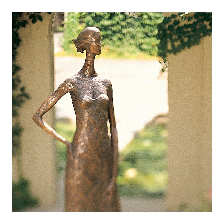 The tall sculpture Hand on Hip Tall by Tom Corbin is made of bronze.