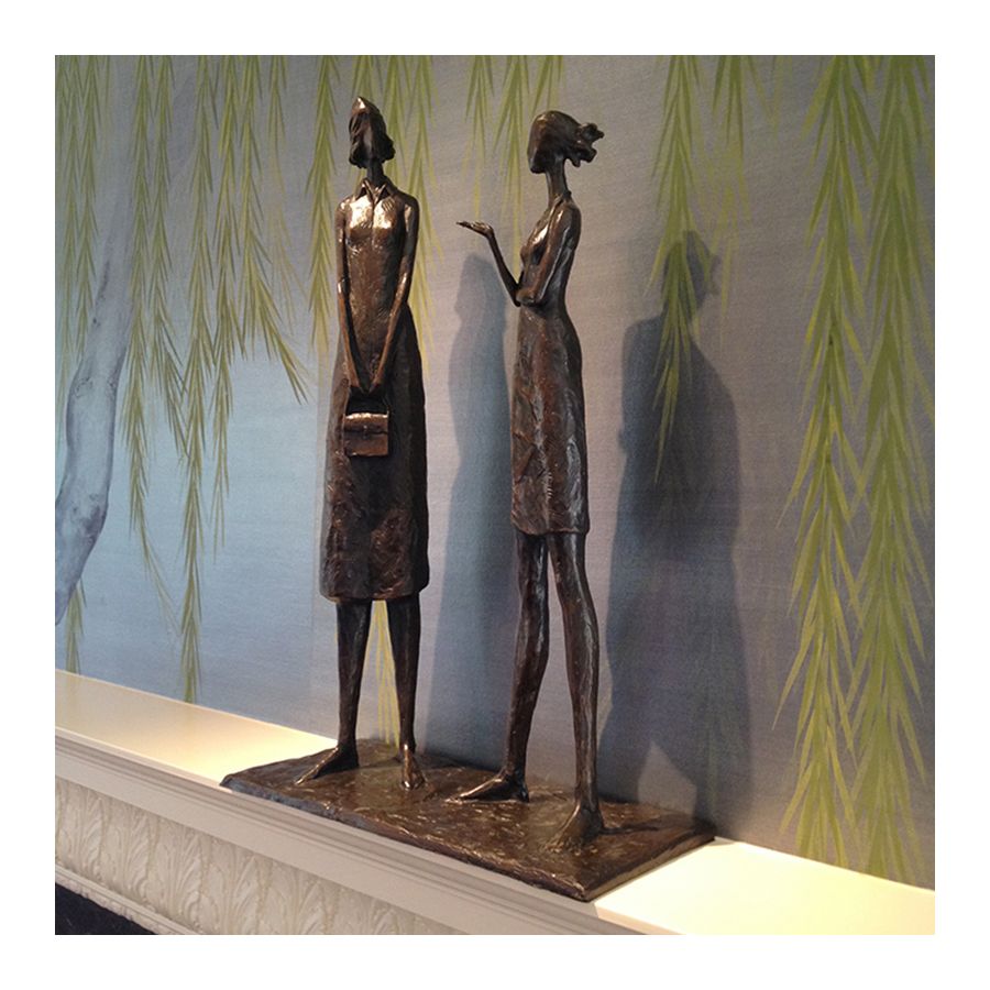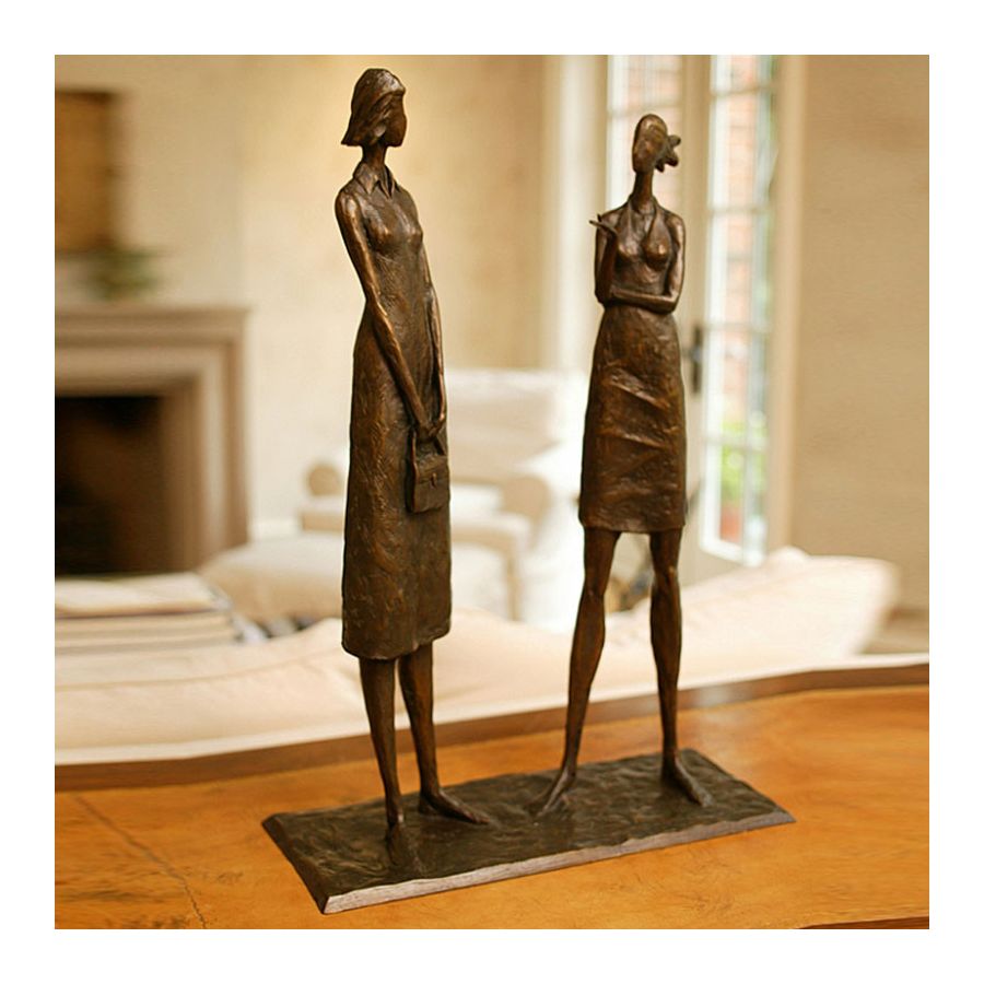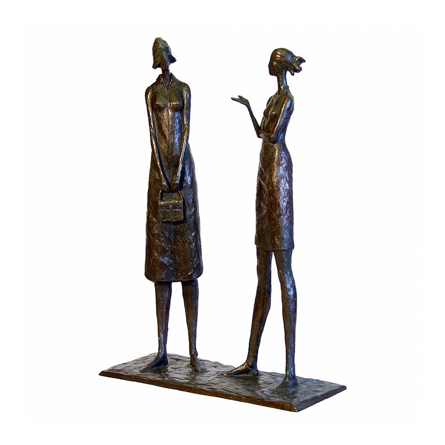 The medium sculpture The Conversation by Tom Corbin is made of bronze.
