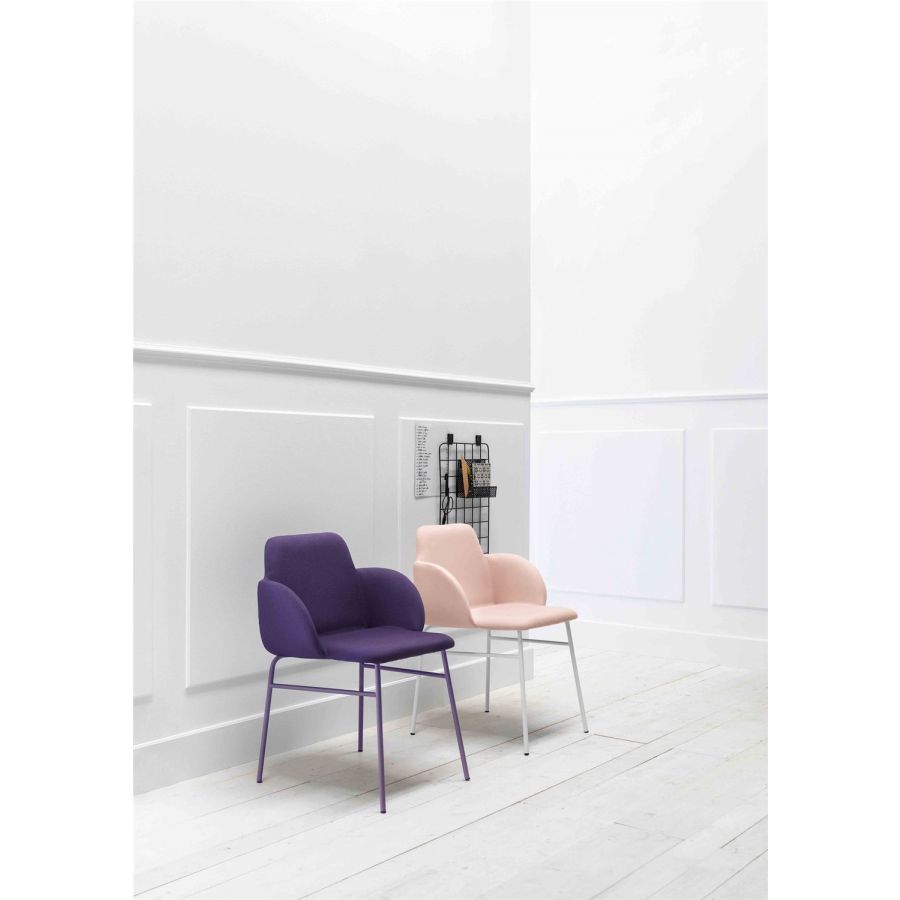 The structure is lightened with clean legs thanks to the use of the metal rod. A pleasantly soft and graceful design, that of the new Bardot Collection, with a 1950s flavor, made up of full volumes, rounded lines, rounded corners and in which you can feel a singular overall harmony.With a wide range of coatings, fire-retardant fabrics, wools, velvets, leather or eco-leather, which make Bardot suitable for both domestic environments - kitchen, dining room, study - and larger contract contexts.