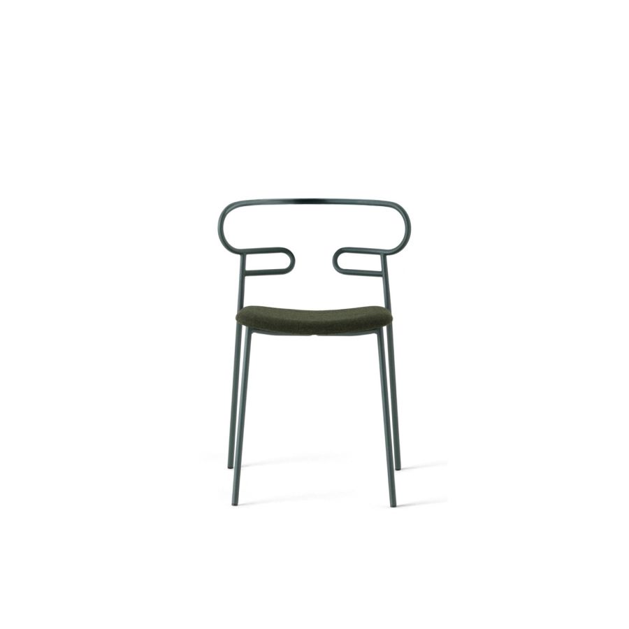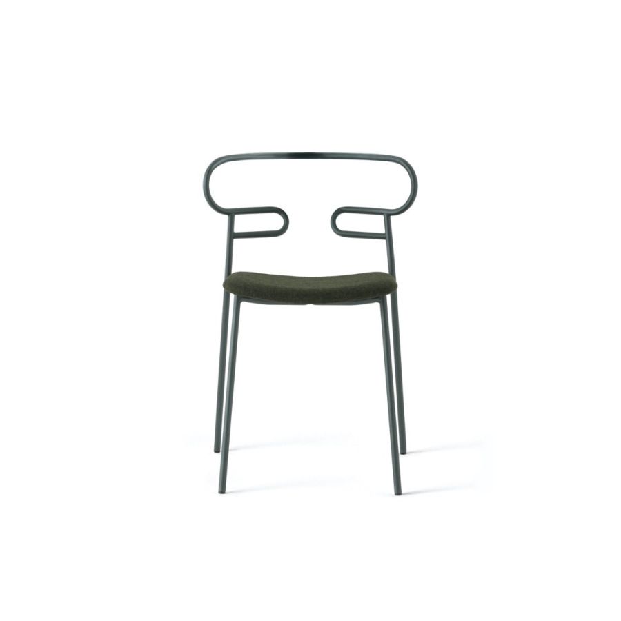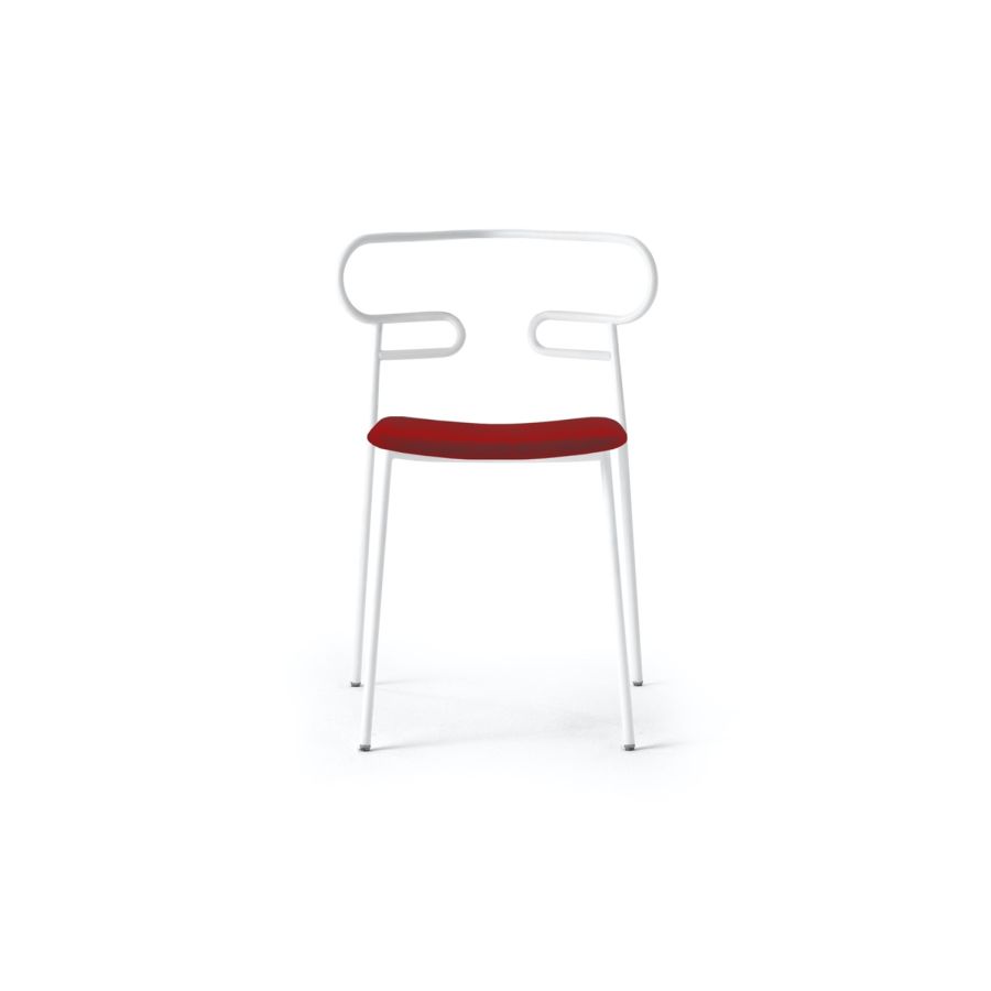 The powder-coated metal tubular structure is available in a wide range of colors; the slightly curved seat - for the indoor versions - is in ash wood (natural or painted), or padded with different fabrics, leather or eco-leather.