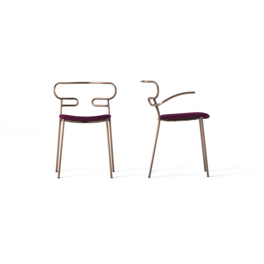 The characterizing element is the 'one line' backrest, obtained from the curvature of a single metal tube which - with its virtually infinite sinuous line, extended into this new version in the armrests - fits discreetly into any space, connoting it with lightness. At the Salone del Mobile 2019 the outdoor version of the seats is presented - with a body in integral polyurethane painted in the mass and in the mold - also available with a backrest woven with colored rope, which enhances, in addition to aesthetics, the level of comfort.