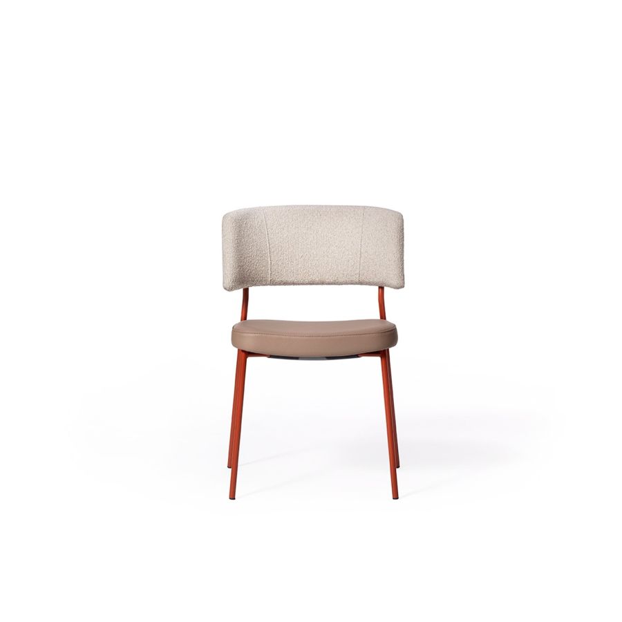The Marlen project, the new TrabÀ seat designed by EP Studio, is born under the banner of comfort, ergonomics and resistance. A Fifties flavor can be seen in the curvature of the backrest - as generously padded as the seat - and in the 4-legged structure in light and dynamic metal rod, which becomes more prosperous and retro in the solid ash version. Brass or brushed copper enrich the color palette with a vintage taste that you can play with to get the perfect seat, in a residential project as well as for tailor-made contract.
