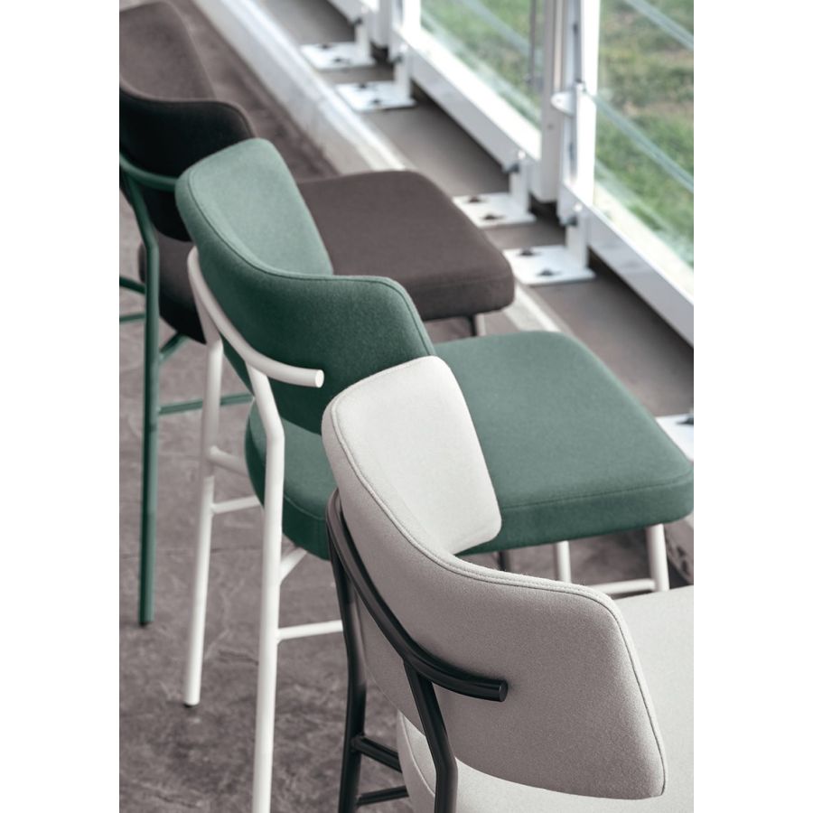 The Marlen project, the new TrabÀ seat designed by EP Studio, is born under the banner of comfort, ergonomics and resistance. A Fifties flavor can be seen in the curvature of the backrest - as generously padded as the seat - and in the 4-legged structure in light and dynamic metal rod, which becomes more prosperous and retro in the solid ash version. Brass or brushed copper enrich the color palette with a vintage taste that you can play with to get the perfect seat, in a residential project as well as for tailor-made contract.