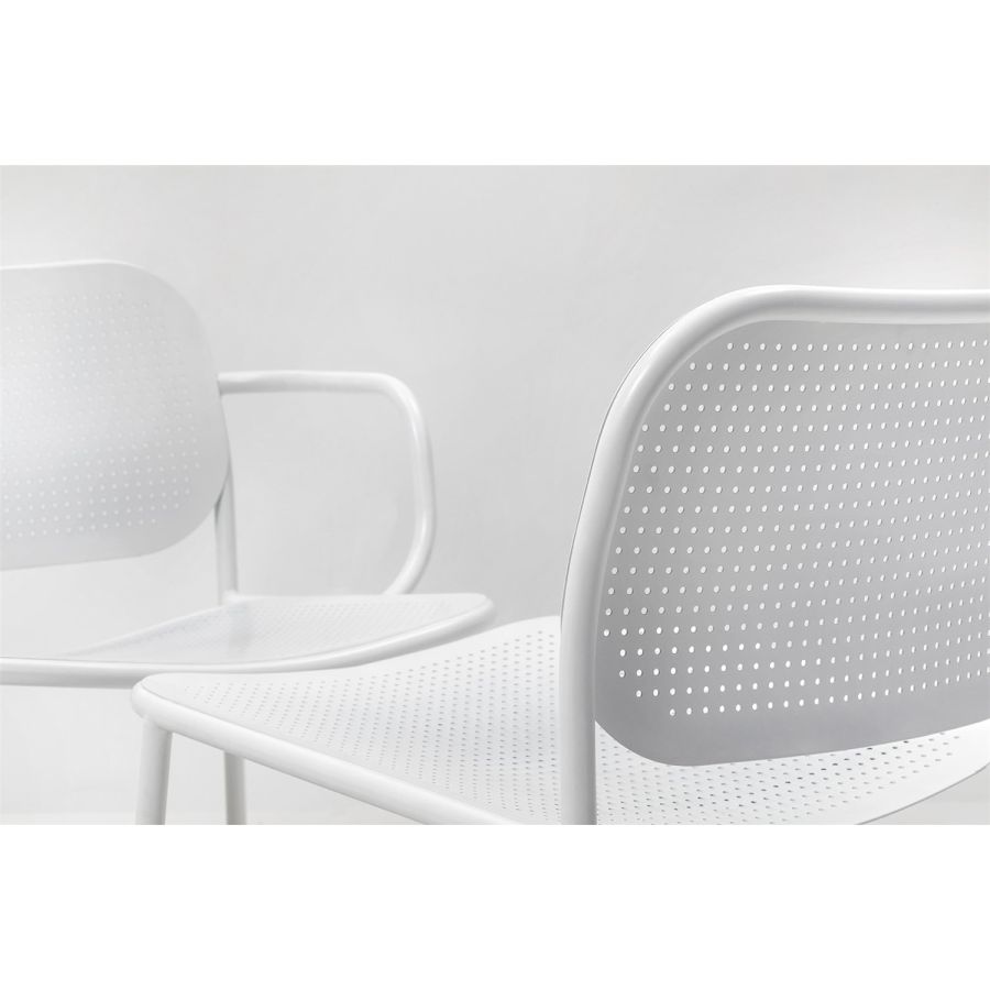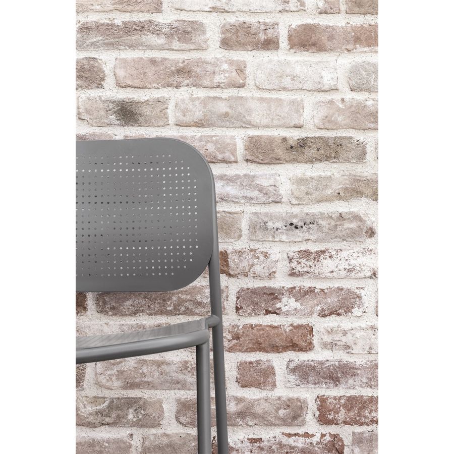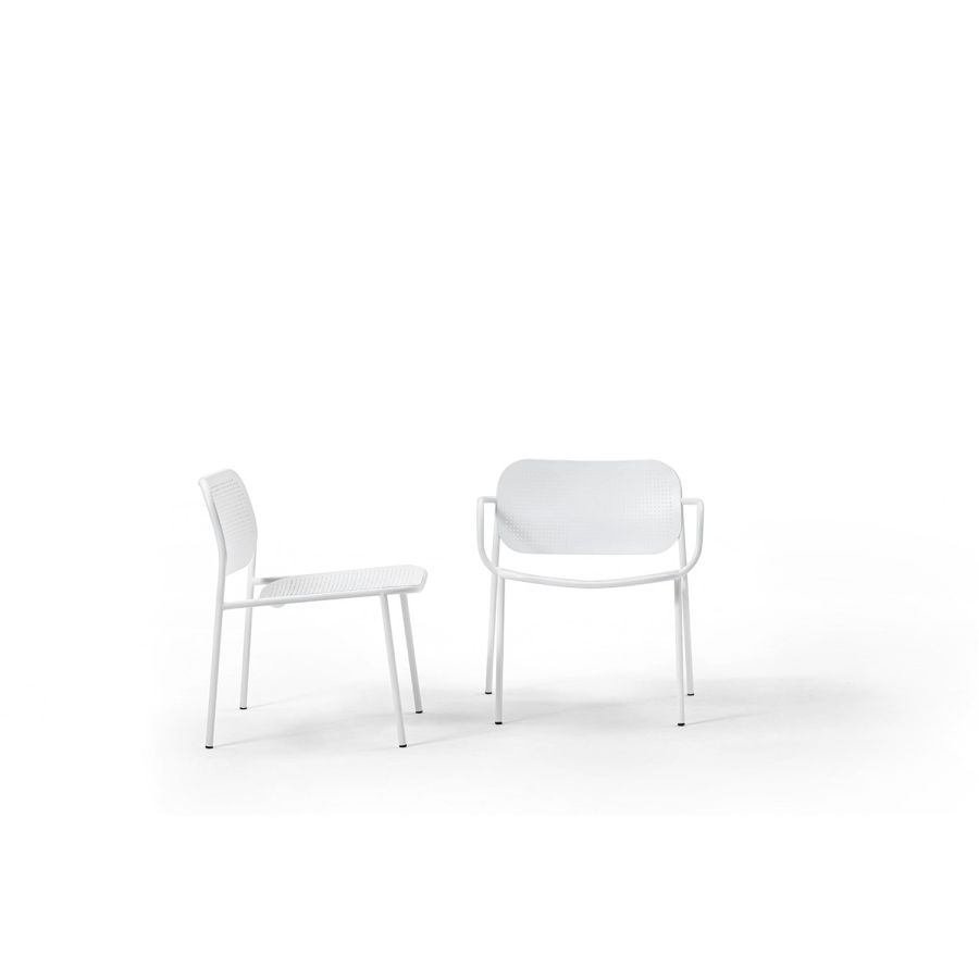 The METIS DOT collection includes the chair with or without armrests, the lounge version with or without armrest and the stool in two heights. In all versions, the tubular metal frame is complemented by curved metal sheet backrests and seats with a decorative hole pattern, as a modern interpretation of the classic Viennese weave. Available in all standard and special colors, METIS DOT brings its unique style to indoor and outdoor spaces.