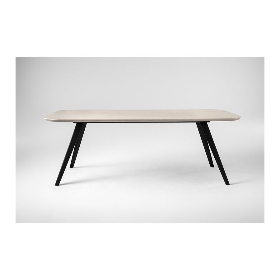 The colour range comes in different finishes: natural ash, bleached ash, cocoa-stained with an open pore finish, and new colour combinations in pastel shades. The top is in ash-veneered MDF, and the frame in solid ash. The collection includes a square, round and rectangular table.