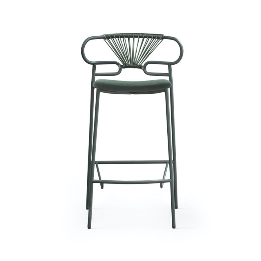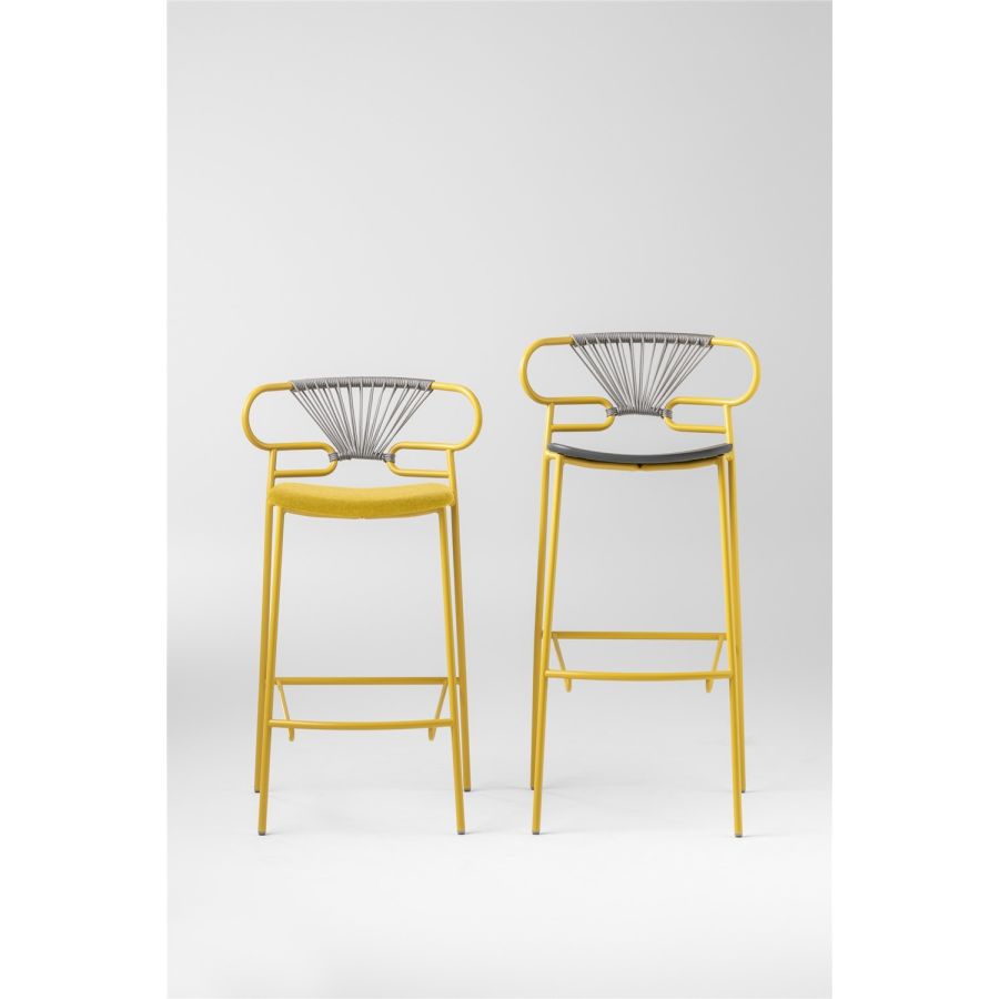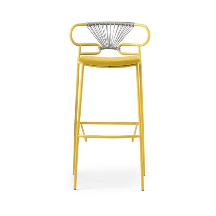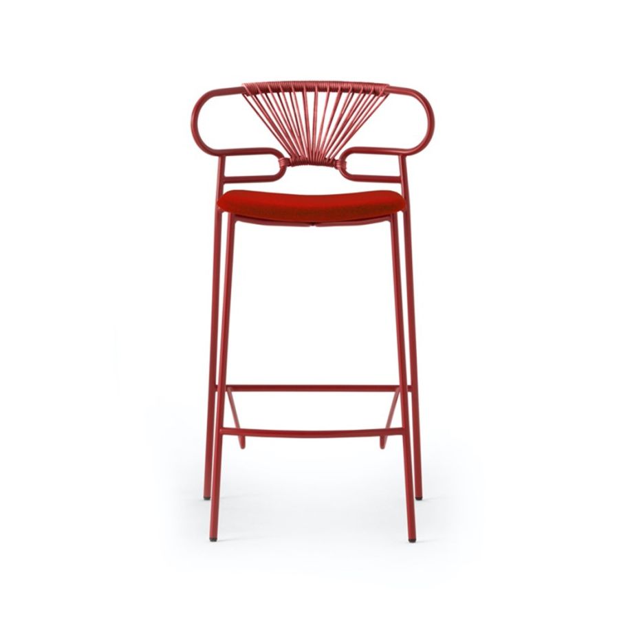 | Description: | Stool with painted metal frame, ash seat, backrest with braided color rope. Available as well with metal frame in chrome shiny, chrome black shiny or brass shiny. |