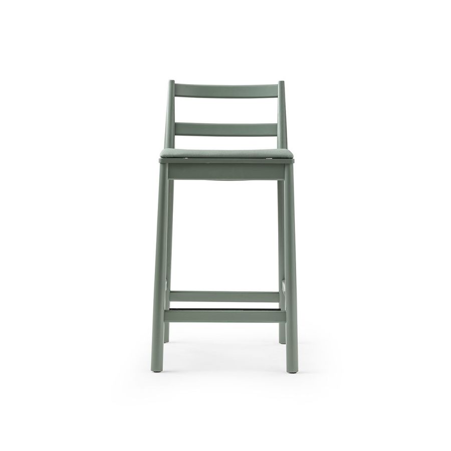 Julie has not only been reinvented with a rope weave backrest but the family is extended to create a spin-off of the chair: a versatile stool, available in two heights, designed in two variants with a plywood beech backrest and woven backrest.