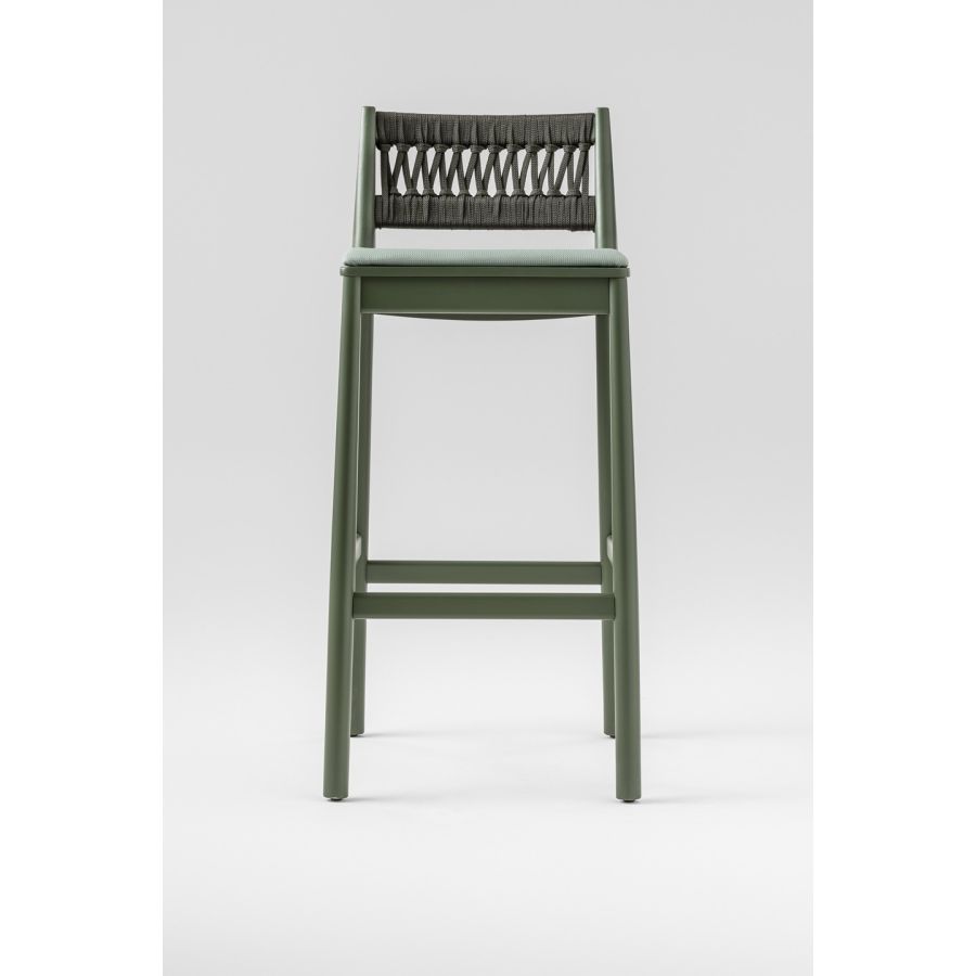 | Description: | Stool in beech with padded seat and backrest rest in color rope. |