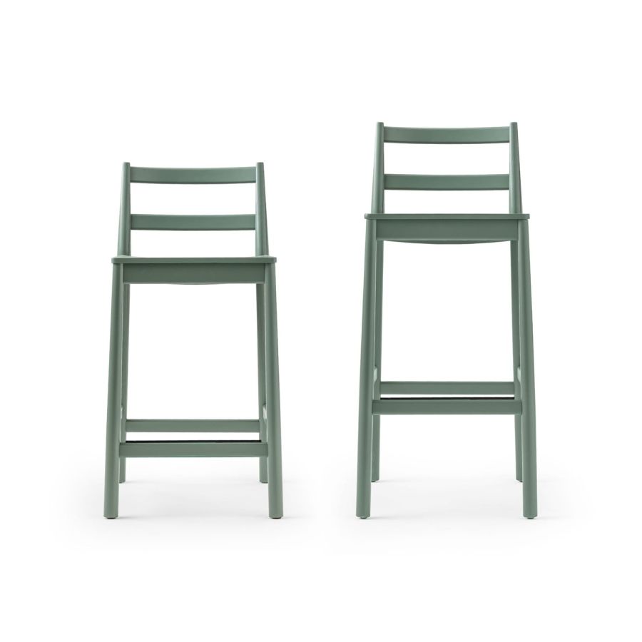 Julie has not only been reinvented with a rope weave backrest but the family is extended to create a spin-off of the chair: a versatile stool, available in two heights, designed in two variants with a plywood beech backrest and woven backrest.