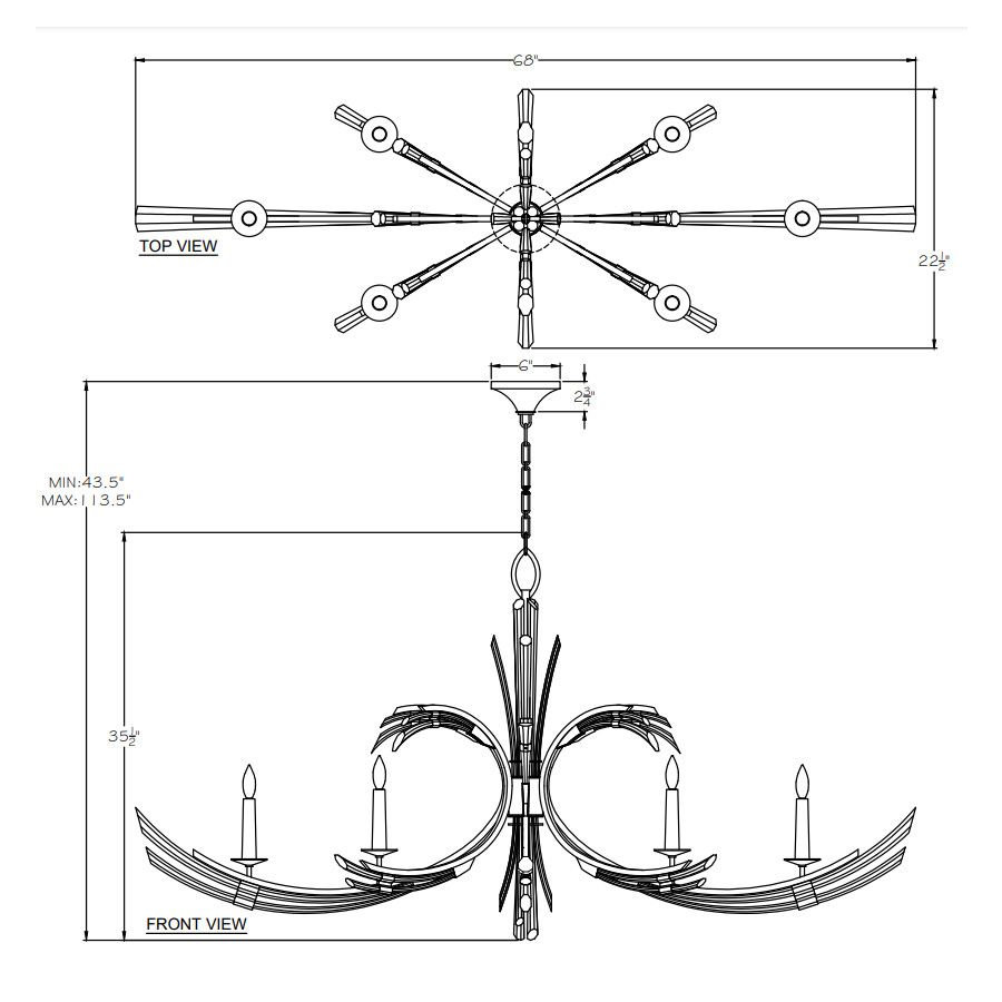 Trevi 68″ Oblong Chandelier is available in 3 models (Finish / Model number):