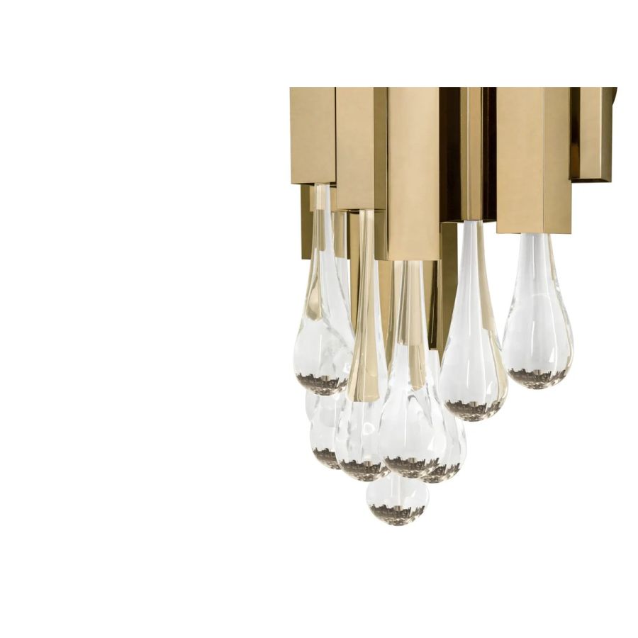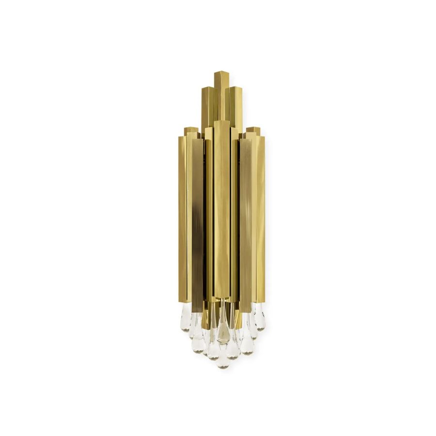 The Trump II Wall Lamp gets its inspiration from the architectural lines of the Trump Hotel. It features a gold-plated brass structure finished with sublime crystal glass tears. A wall light that will provide charming lighting to the most elegant projects, from residential to hospitality.
