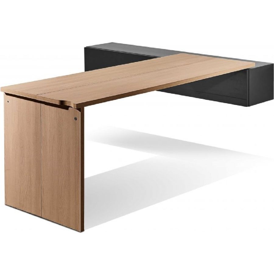 TWIST table turns into desk. The rotation of the upper top creates desk which, once opened like a book, can be converted into a home office area.