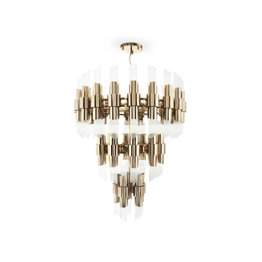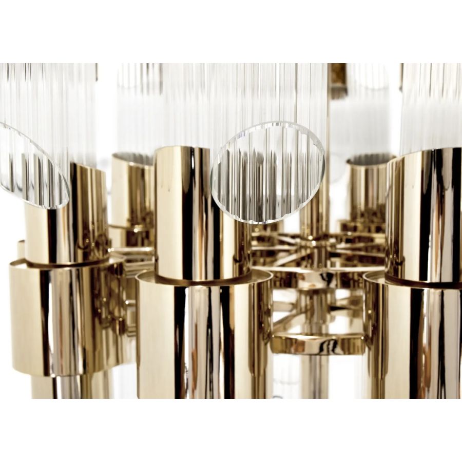 Drawing inspiration from the most unusual planetarium in the world, the Tycho Chandelier is a layered lighting fixture made of high-quality brass rings and crystal glass tubes. Highly decorative and elegant, the Tycho fits perfectly into modern lounges and dining areas.