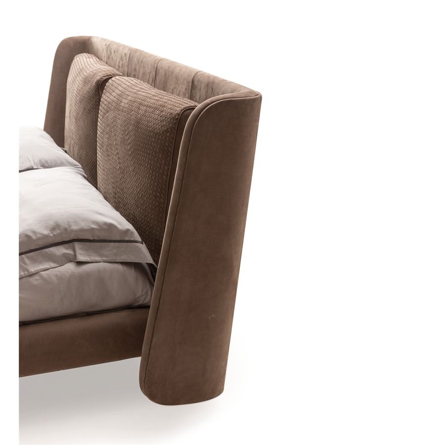 The double shell of the headboard also allows the use of different leathers or