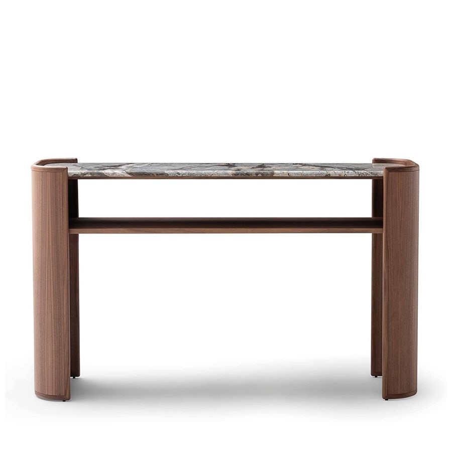 Ulivi Salotti living room furniture delivers sophisticated yet practical solutions for styling any space with intention. Crafted from premium materials with meticulous design attention, these pieces strike an ideal balance between visual appeal and everyday utility. Conceived to organize and elevate the living environment, they're engineered to accommodate daily life seamlessly. The American walnut structure paired with a twister marble top exemplifies this marriage of form and function.