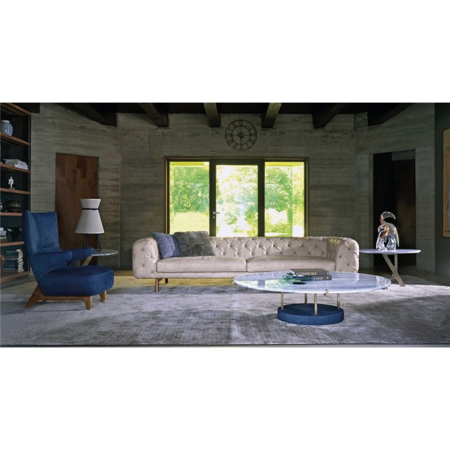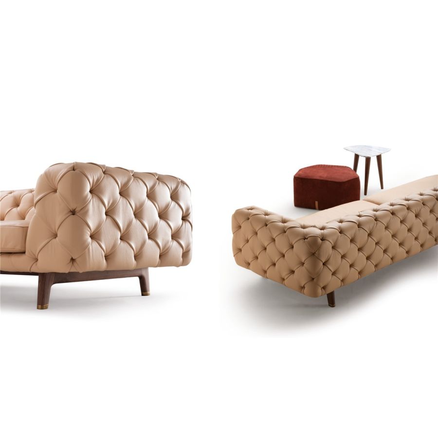 new collection , made unique by a real hand made capitonné on back cushion and arms. Seat cushion padded