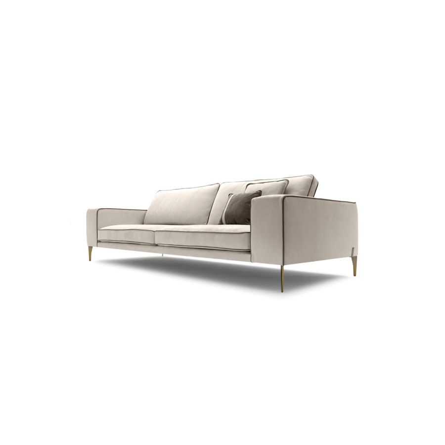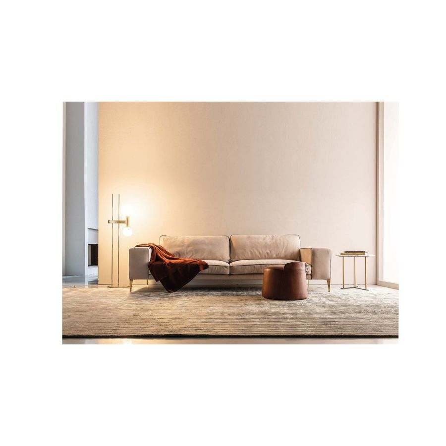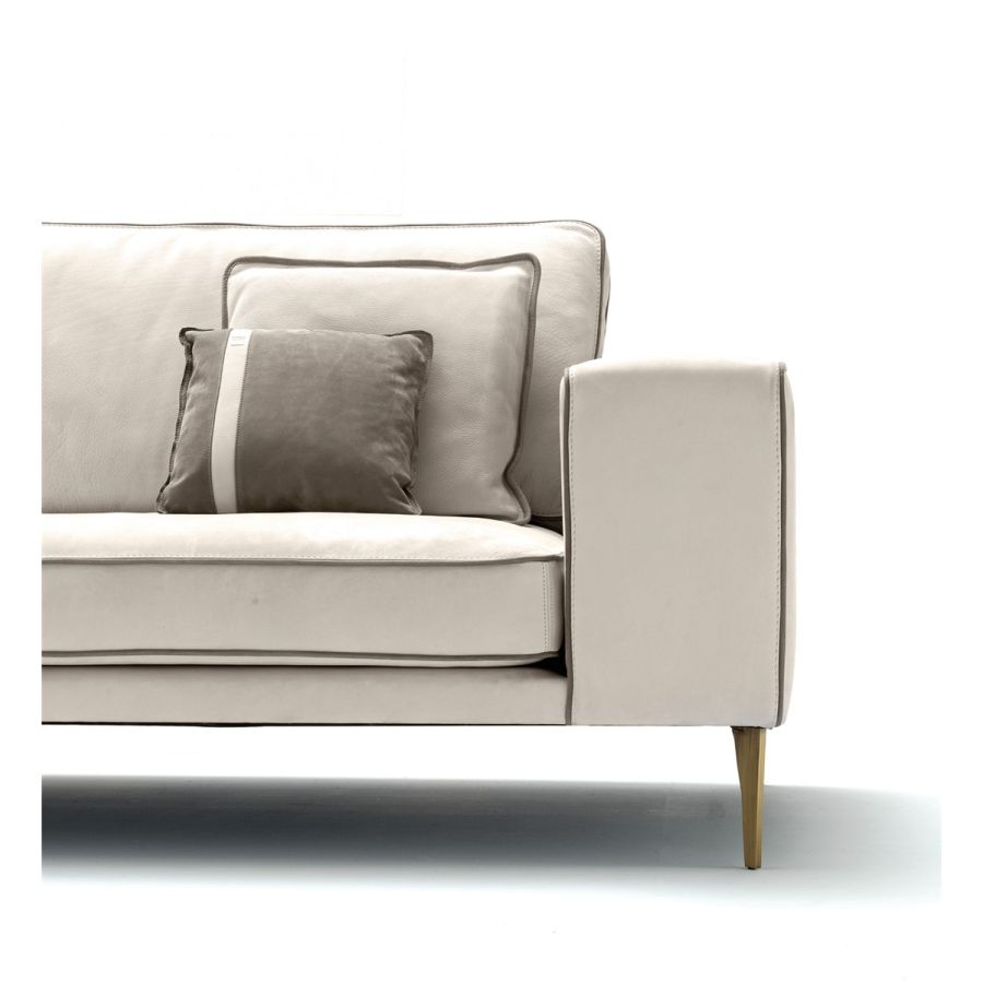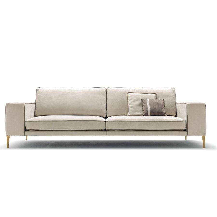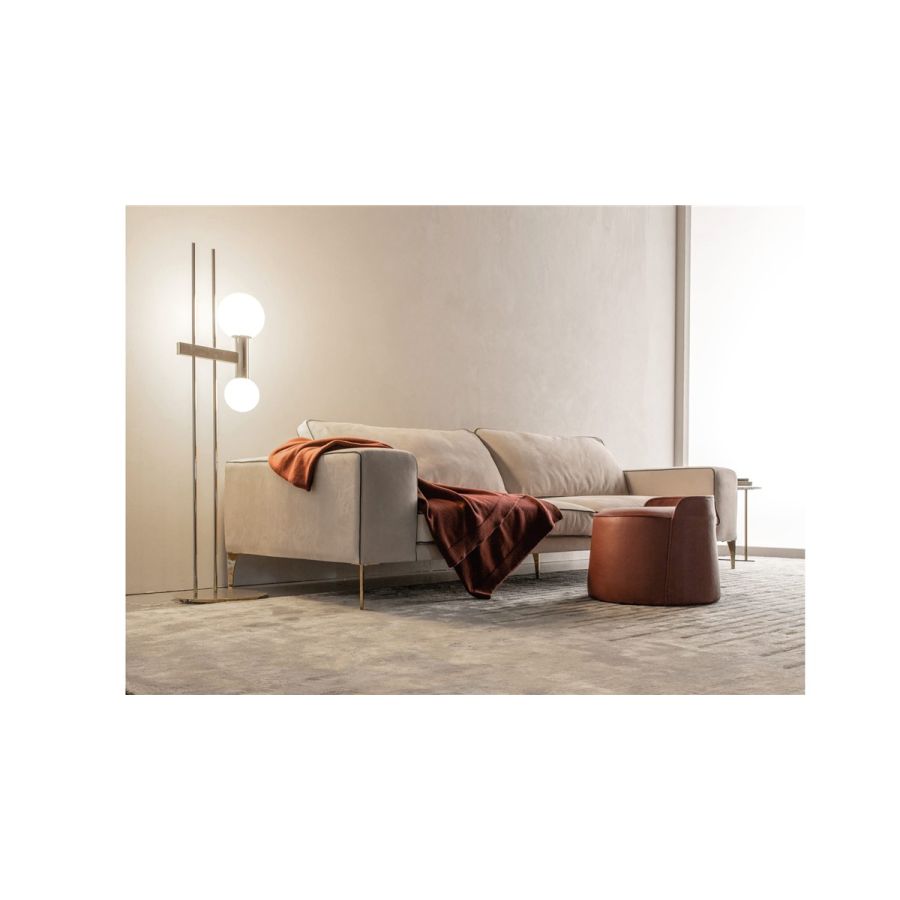A light and essential sofa, with a clean and soft design, which is kept high on the floor by elegant metal feet