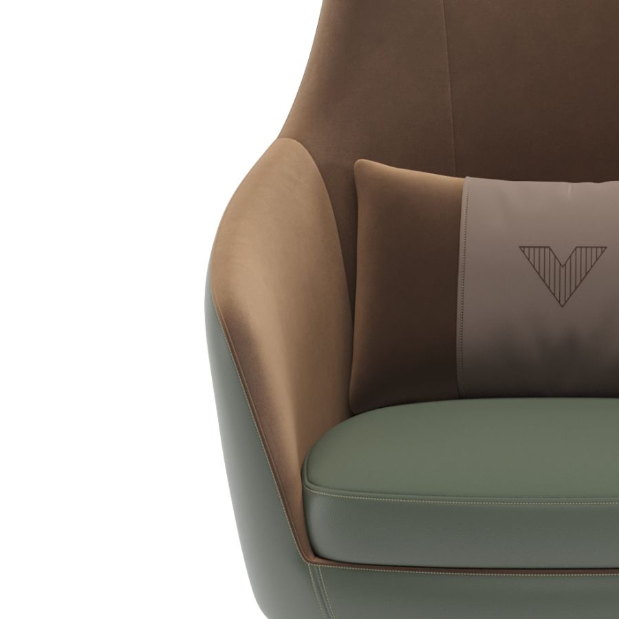 Its beauty can be found in the materials combination: the external part of the seating is covered with leather, the inner part in suede Eco Nabuk.