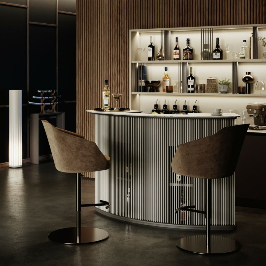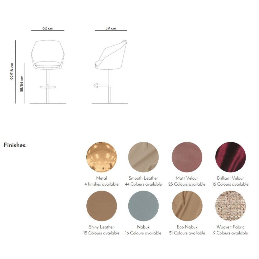 Edgar swivel stool has been designed to be the perfect seating of Vismara Bars.