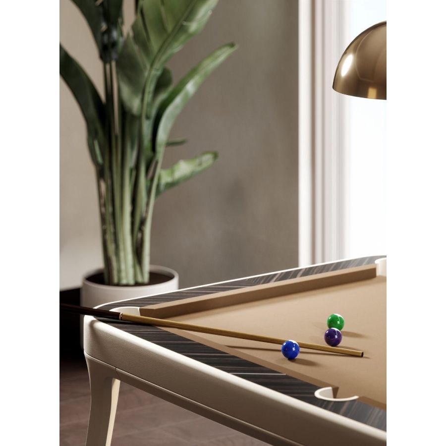 EXTRA: Set of cues and balls, Cue Rack, Lacquered Triangle, Removable Dining Top