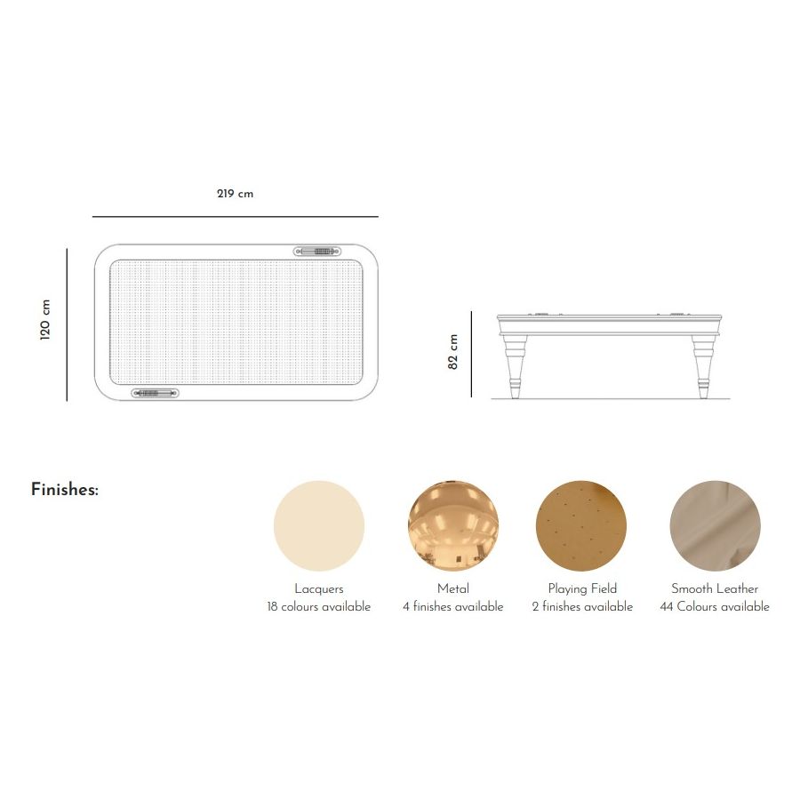 The playing field is in metal laminate with punctures that guarantee a proper air backflow, available in 2 colours: Antracite and Gold.