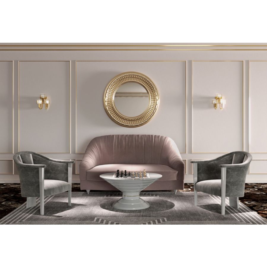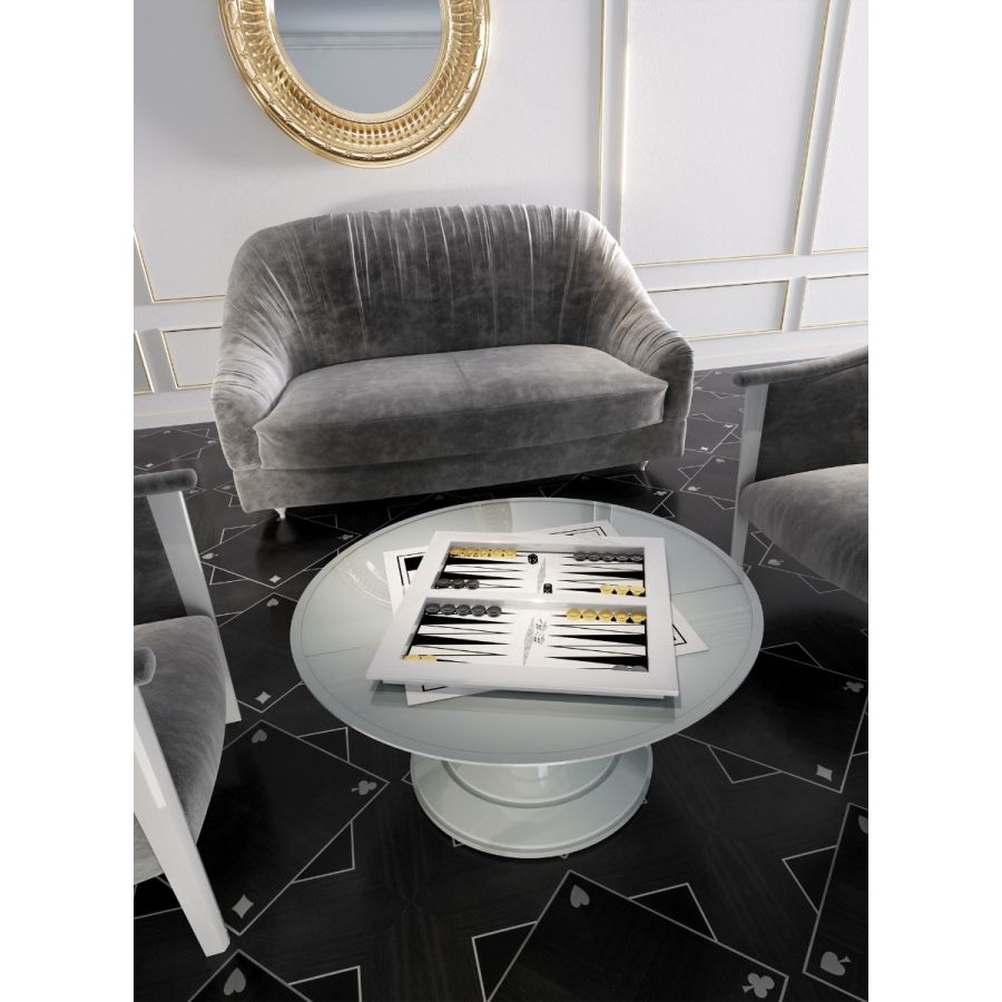 In the inside space are located chess, checkers and backgammon sets. The chessboard is elegantly inlaid with ebony and mother-of-pearl and covered with tempered glass. The game pieces are made of turned and anodized aluminum, exclusively designed by Vismara.