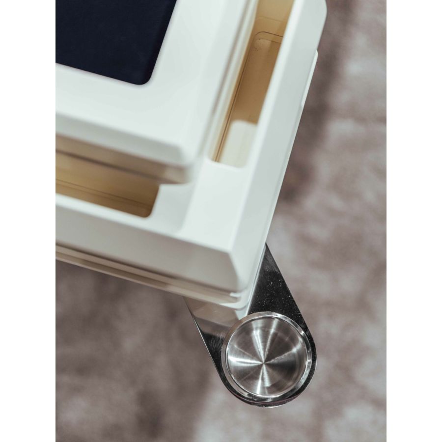 Ming table is also completed with storage compartments and USB ports in all four player positions. The Table is accompanied by two sets of professional magnetic cards. The structure is lacqured with steel details. The playing field is available in traditional velvet or cowhide.