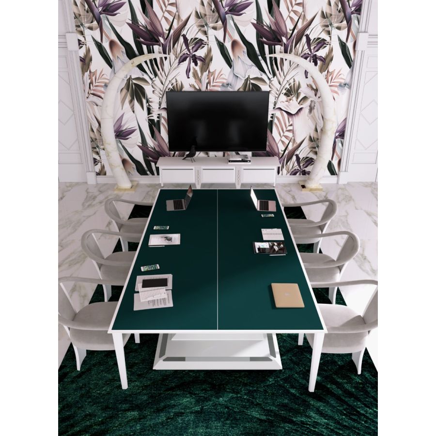 The base, with its contemporary design, makes the table a unique piece perfect to furnish exclusive working places and meeting rooms.