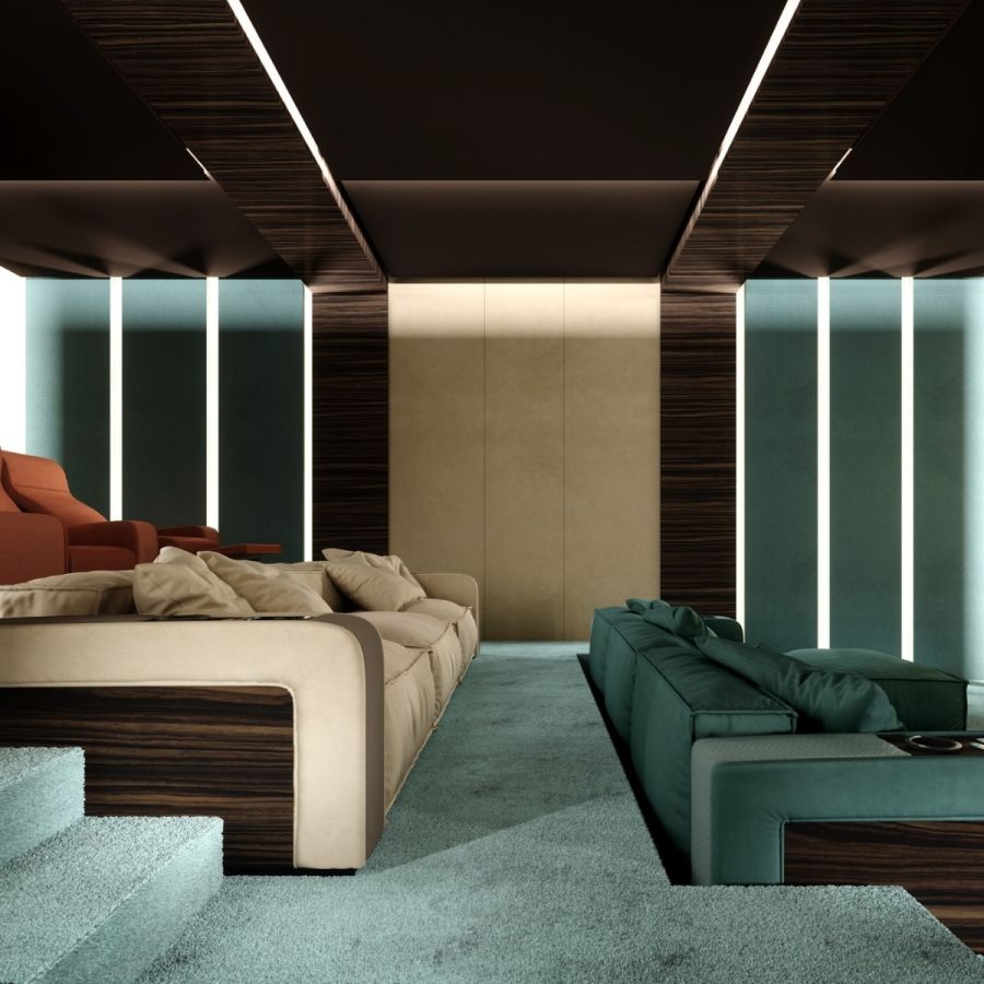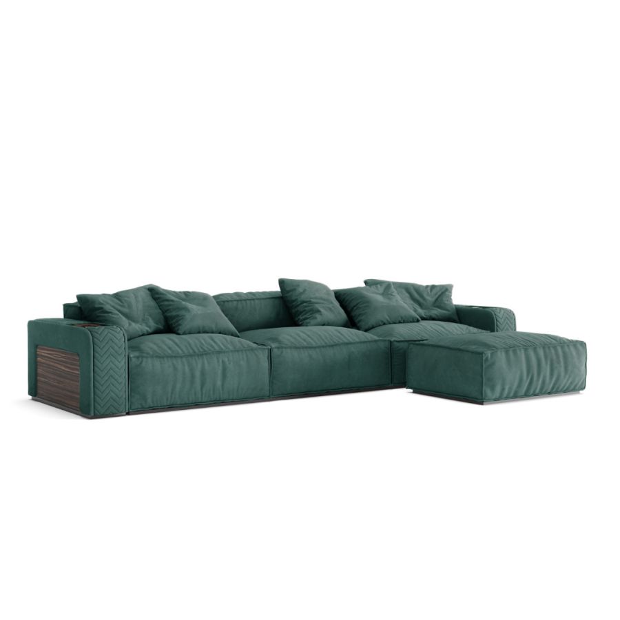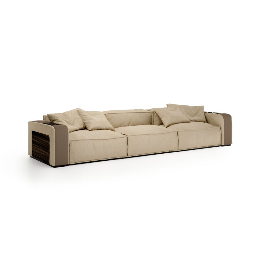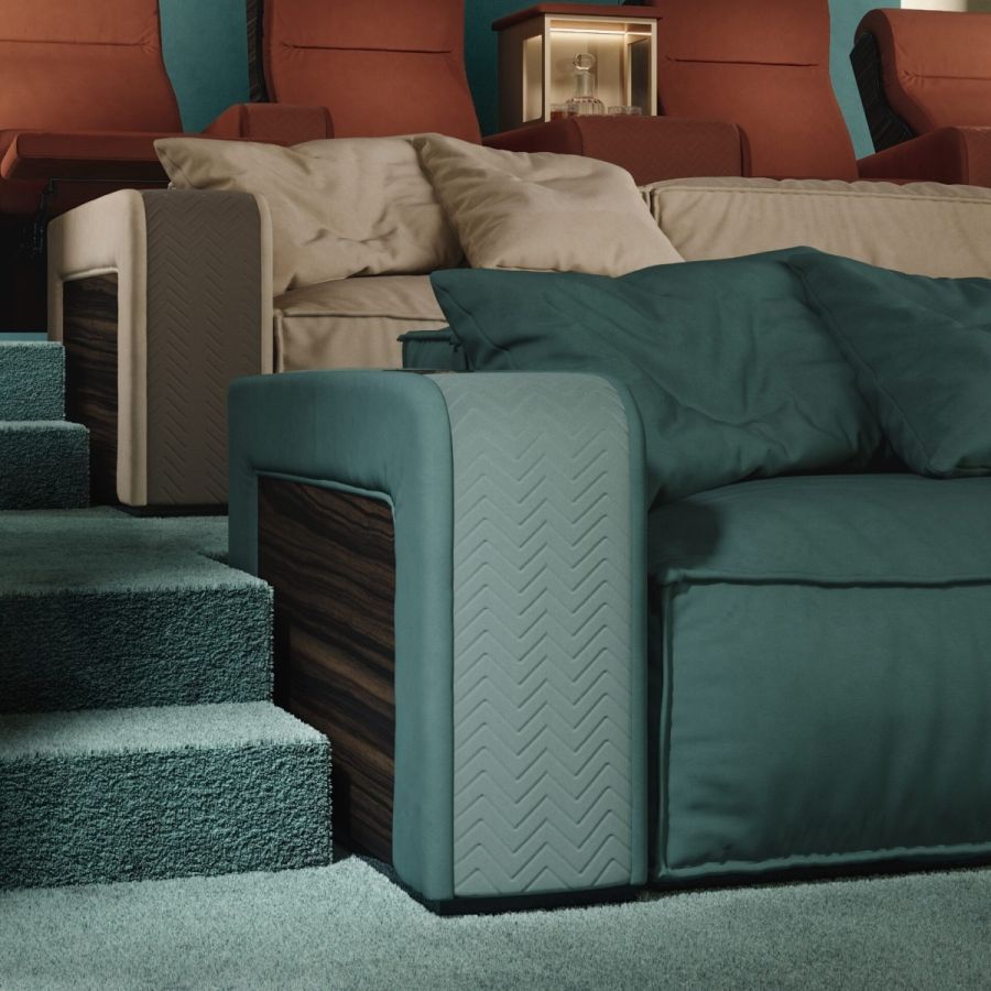 The Onassis modular sofa maintains the characteristic quilting on the armrest and Makassar Ebony on the sides. The seat of Onassis modular sofa is large and comfortable, perfect for home Cinema, multipurpose room and living areas.