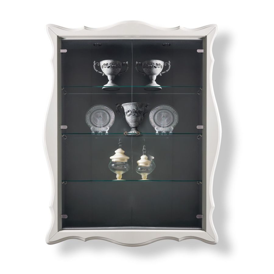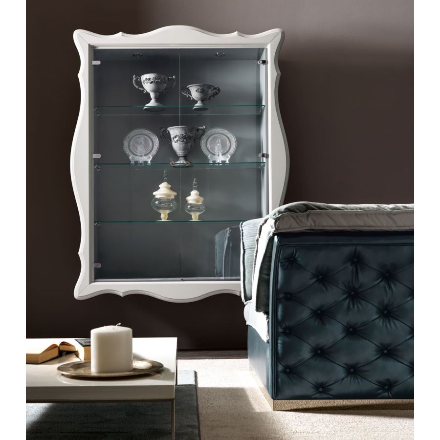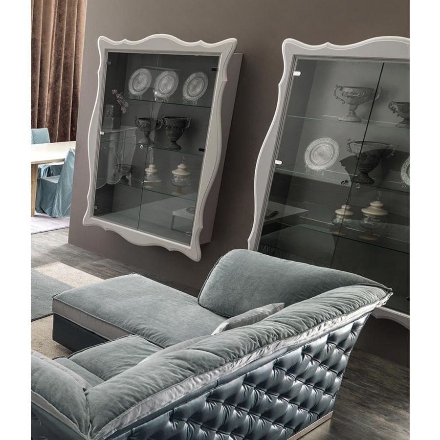 Alice is an ideal collection based on the combination of classic and traditional symbols with modern design. Elegant, essential, vital like the perfect and harmonic shape it has. Offering plentiful finishing choices, Alice display unit allows you to tailor your specific interior design requirements. The refined curvaceous frame and the interior can be finished in different colours to create great combinations. Doors can be realized in smoked or clear glass. In the configurations with clear glass dors also shelves are in glass, for a lavish effect.