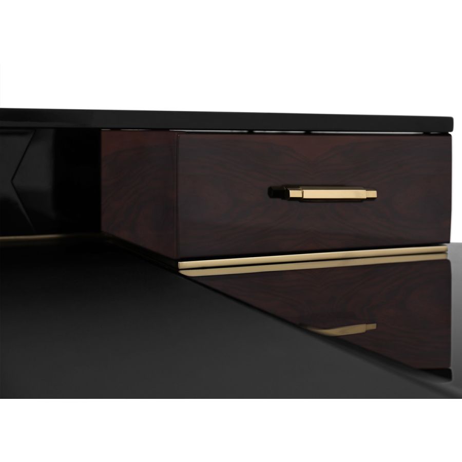 Functional and contemporary, the Waltz Desk exudes an unmistakable style. Its metal feet serve both decorative and structural purposes, providing a fresh interpretation of design. The contrasting textures are a testament to the seamless collaboration between innovative design and meticulous craftsmanship.